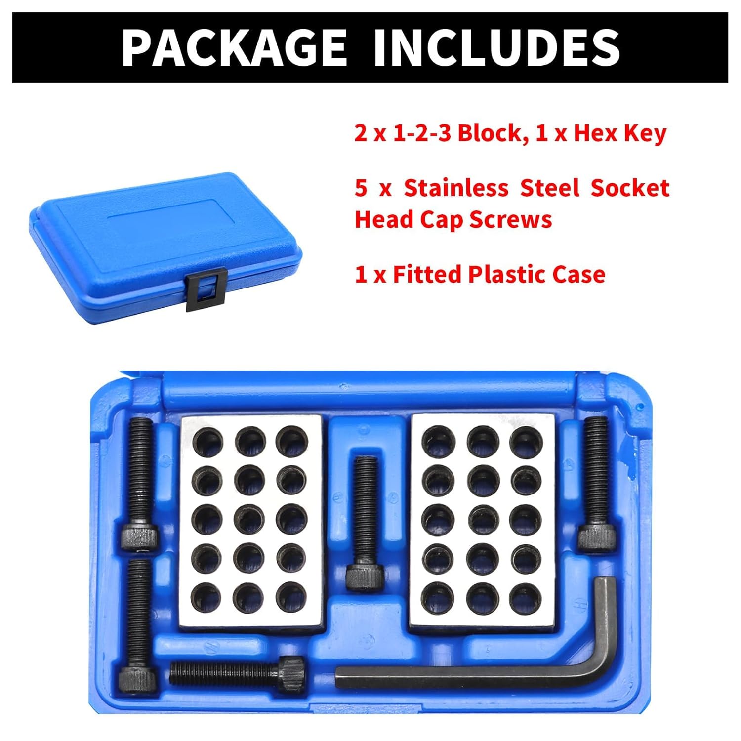 Size within +/- .0002"-+/- .0003"Flatness and parallelism within .0003"Accuracy and squareness on all sides within .0002"-.0003"Pairs are matched to a tolerance of 0.0002"-0.0003"Product featuresMade of hardened tool steel and precision ground on all six sidesSurface roughness: 6-16uinCross drilling design allows efficient use of lower weight with maximum strengthHeat treat and hardness 56 to 62 RCPackage Includes:2 pieces per set