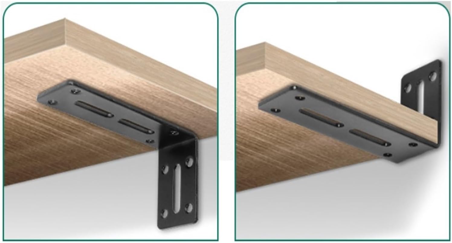 Features Product Info: Hidden Brackets/Wall shelf bracket/Shelf Brackets/Floating ShelvesMaterial: SteelColor: BlackSize: 12.00X6.00X3.80cm18.00X8.70X4.80cmPackage Include 2 x Floating Shelf BracketsNote:Due to different lighting and screen settings, the item color may be slightly different from the picture.Due to different manual measurements, please allow a 1-2cm difference in size.