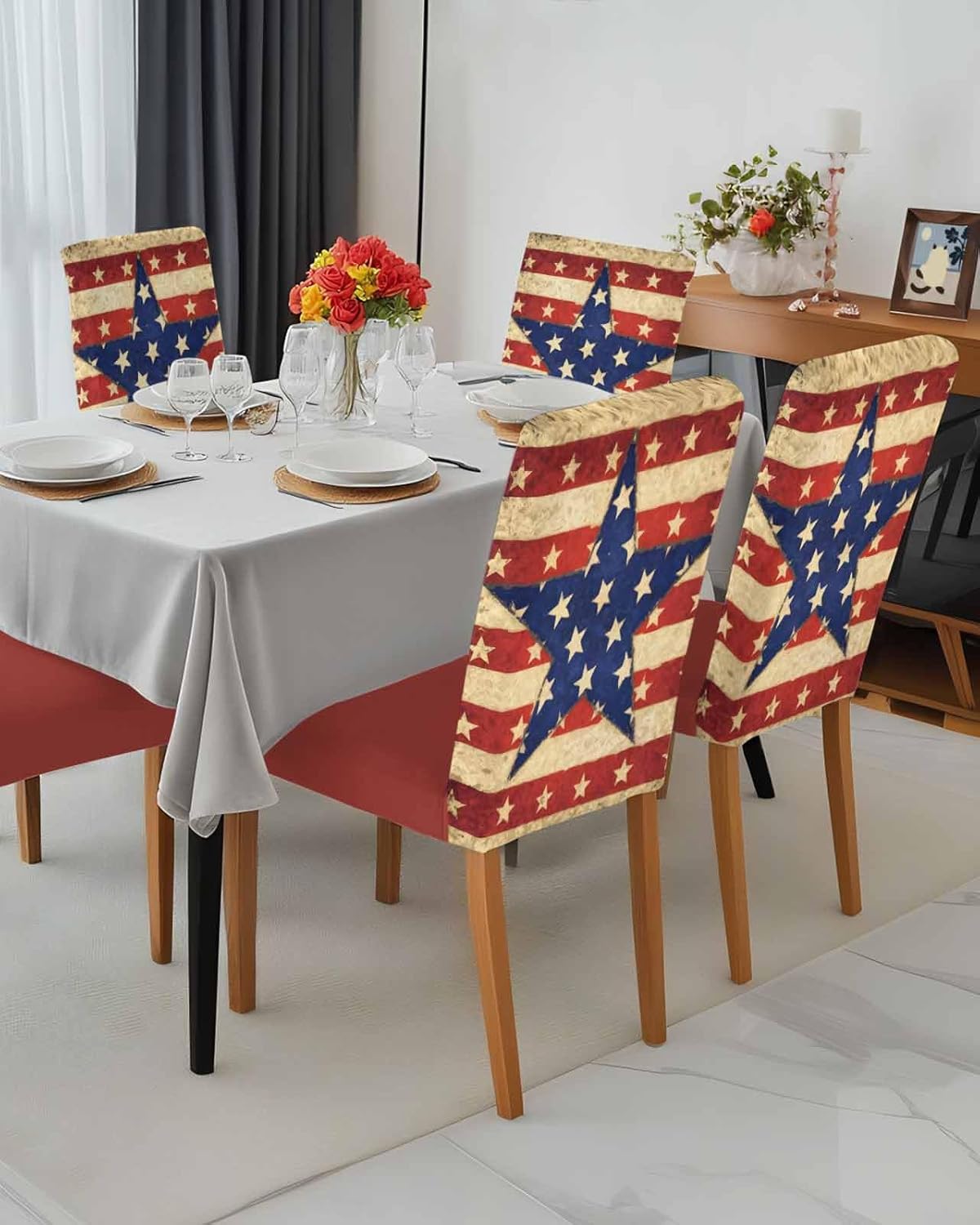Material FeatureHigh-quality polyester fiber elastic fabric;Soft, and non-wrinkleStretchable, rebound quickly, and not easily deformed.Fit Size NoteSeat cushion length:17"-22" (45-55cm); Seat cushion width: 12"-20" (30-50 cm);Total seat length: 35in (90cm). Set: 4 pcs; 6pcs;Please measure the size of the cushion before order.The ideal chair cover you are looking for is hereStylish and exquisite chair slipcovers are indispensable home decorations. Various style like farm/retro/modern/bohemian/Nordic/cartoon/country/business can be choosed. We also provide holiday themed patterns for Easter, Memorial Day, Mother’s Day, Father’s Day, Independence Day to create a festive atmosphere.Any question please contact us