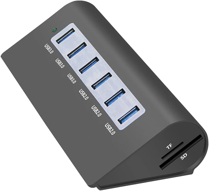 Name: 6-port plitter + card reader Material: aluminum alloy Color: black/silver/gold Cord length: 100cm unplug: support hot Interface: USB 3.0*3\USB 2.0*3 3.5mm power interface, when the computer's USB power supply is insufficient, it can be expanded to provide more sufficient power. A special silicone gasket is made at the bottom of the metal shell, which is soft and does not damage the desktop, suitable for wooden, leather, glass and other desktops. High-quality, high-strength and density metal materials, light and thin, durable, wear-resistant and durable, safe and non-toxic, using metal polishing technology, nickel-plated interface. Smart chip, high-speed operation. Overvoltage protection to prevent equipment damage caused by excessive voltage. Multi-system compatible, plug and play without driver.