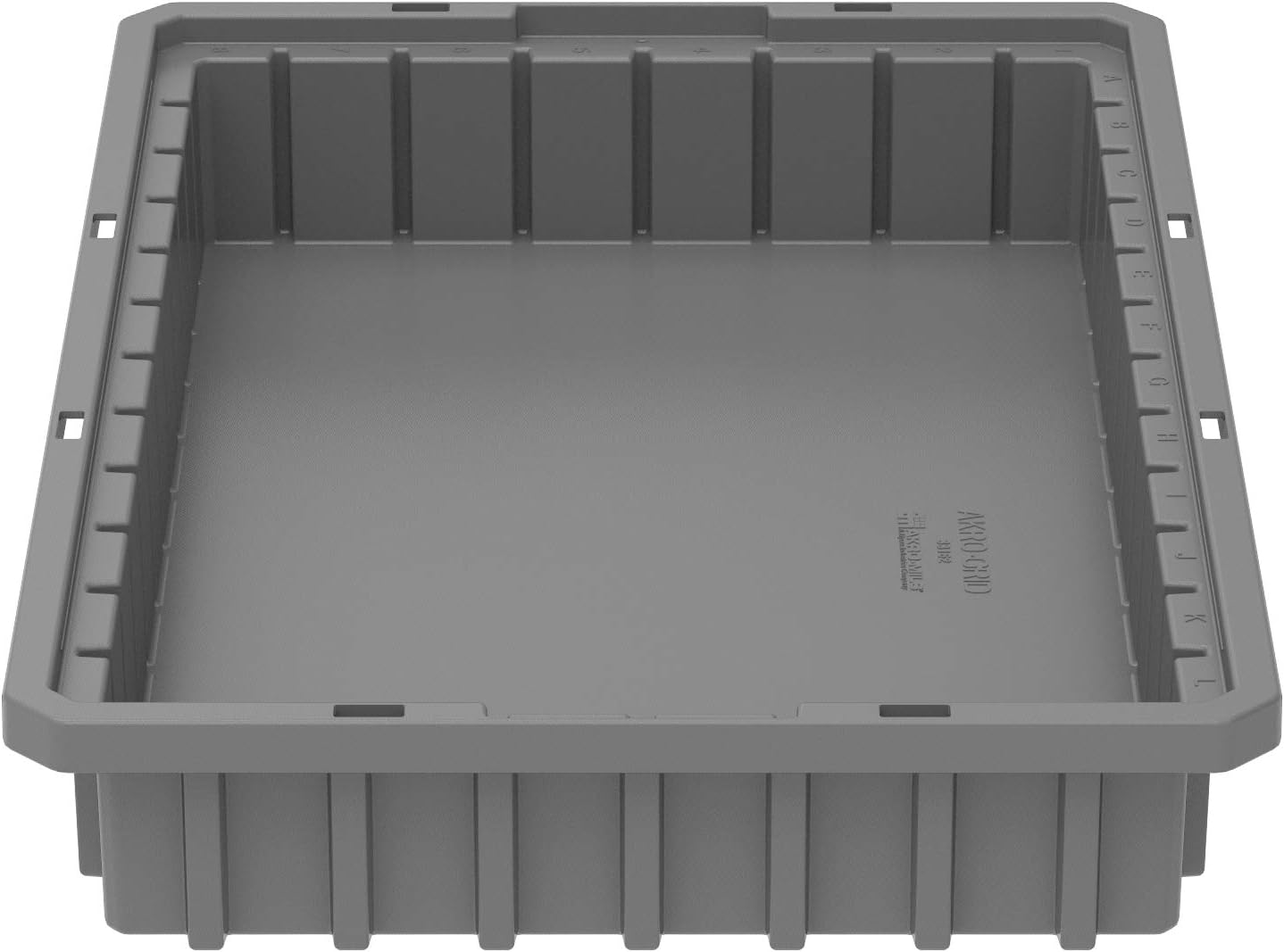 Akro-Grid Dividable Box 16-1/2 x 10-7/8 x 2-1/2, Gray. Designed for versatility, AKRO-MILS Akro-Grid Dividable Containers can be sub-divided into compartments as small as 1-1/8" square. Made of high-density, industrial-grade polymer resistant to most solvents and chemicals. Stackable. Compatible with most racks, shelving, and material handling equipment. Container, clear lids, black dividers and label holders sold separately.