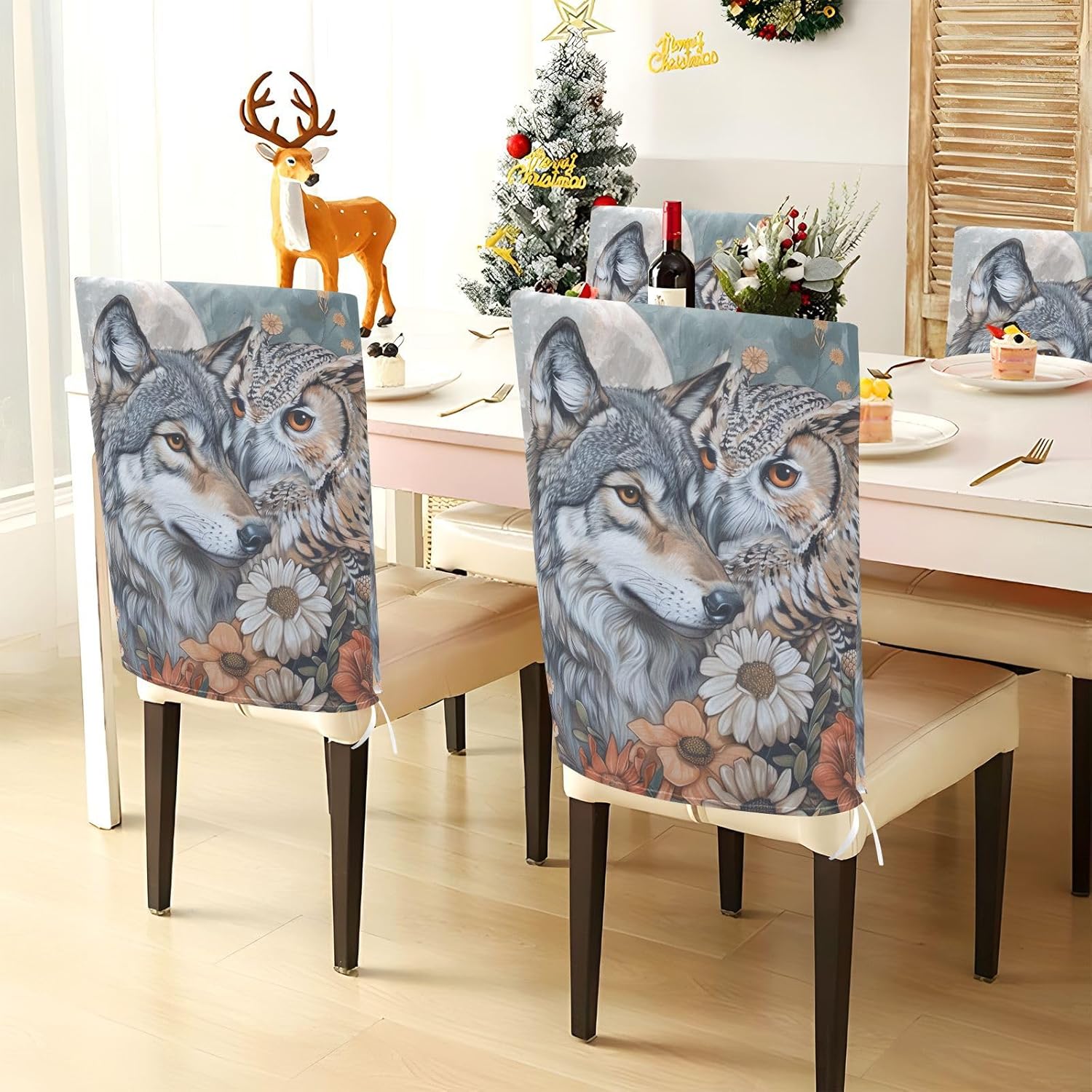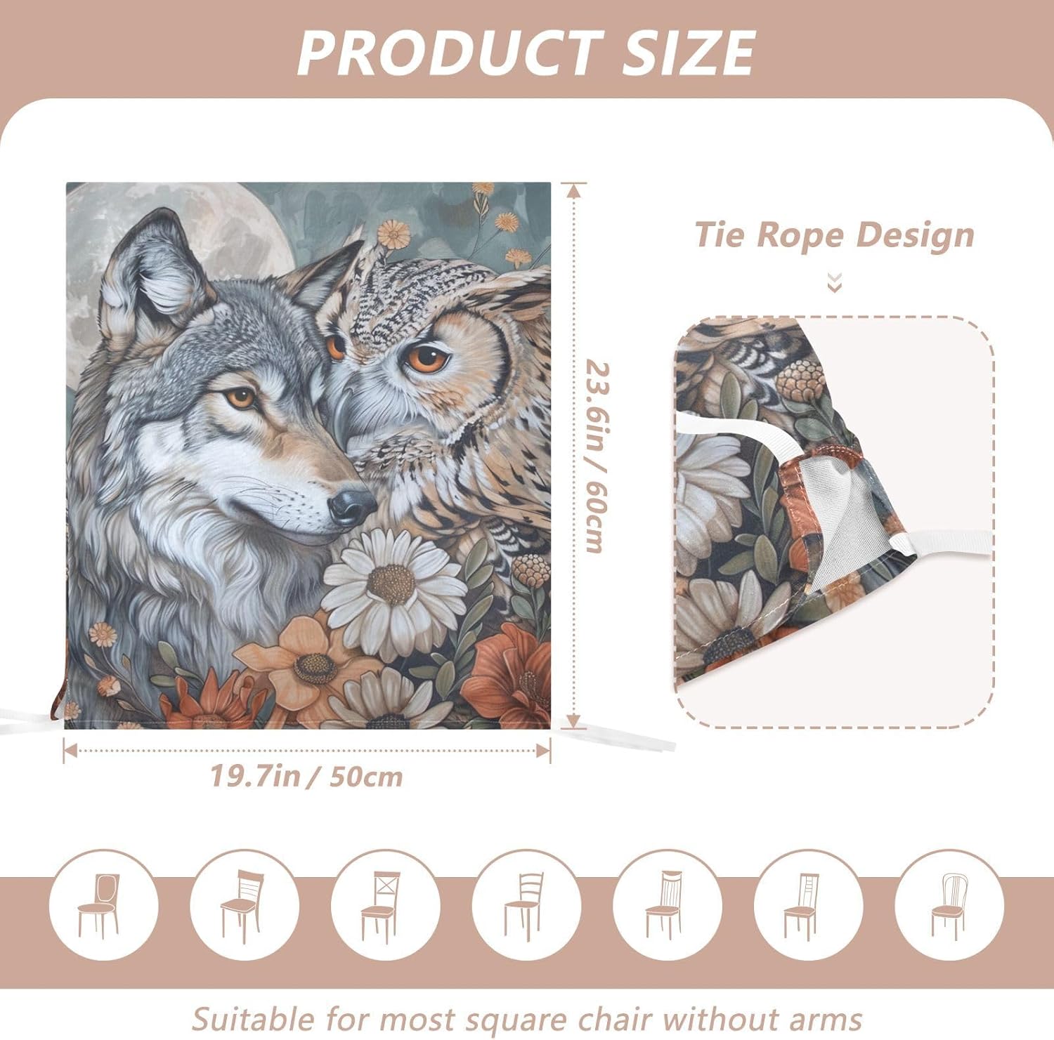 Chair Cover Material made of polyester,comfortable and soft to touch,reusable and suitable for long term use Features easy to install and remove, tie rope design at the bottom,machine washable Stylish Chair Decoration With beautiful pattern,it can be used for family party/ birthday party/wedding/ holiday party to add atmosphere, also can be used for chair decoration in living room, dorm, kitchen dining room,bedroom to bring protection to the chair while avoiding stains to dirty the chair back. Easy To Care Machine washable, Not washing with hot water, Not bleaching