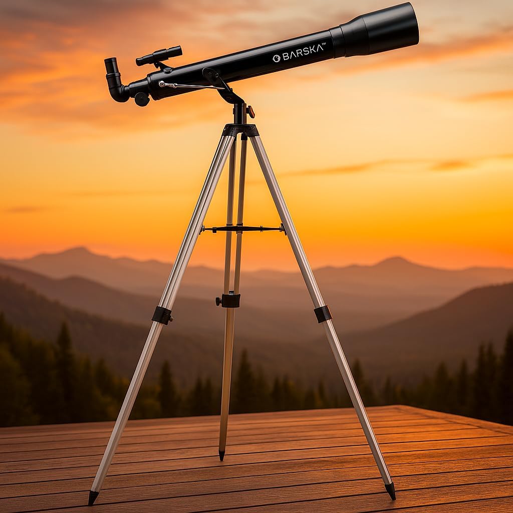 The 525 power starwatcher telescope from Barska is a practical way to start a lifetime journey to the stars and planets. It is easy to set up and comes with the basics; a finderscope, 3 interchangeable eyepieces, 3x Barlow lens, 90 degree erect image diagonal, large tripod. This starwatcher telescope boasts fully-coated glass optics for enhanced image brightness and has been engineered with a smooth functioning altazimuth mount. The 525 power starwatcher telescope is good way to start a budding interest in the celestial Wonders.