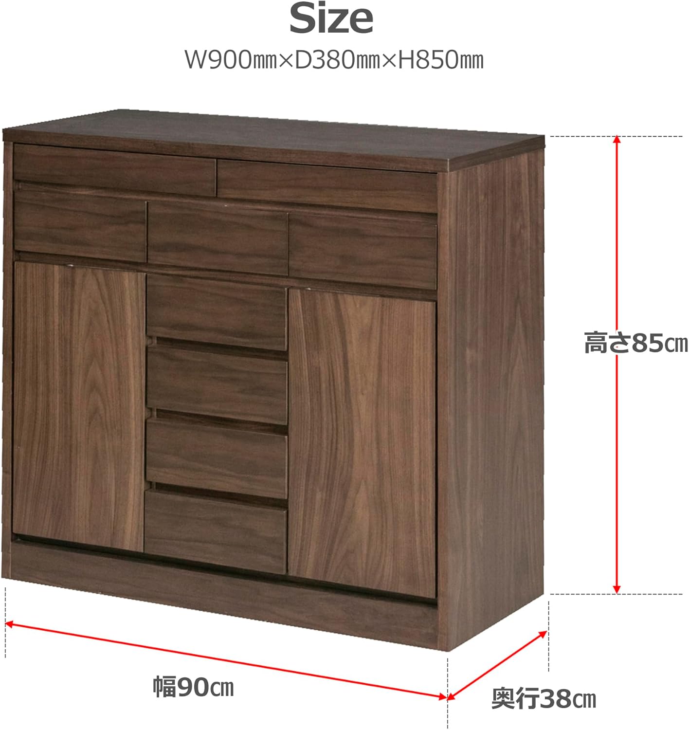 With a wide width of 35.4 inches (90 cm), this table top can be used to store your phone and fax, as well as other household items. In a small drawer, you can use it to store small items such as notepads, pens, and other small items. The opening doors and drawers give a neat look and help you manage and organize your items. The opening and closing door has a movable shelf that can be adjusted to fit your items. Size: Width 35.4 x Depth 15.0 x Height 33.5 inches Weight: 99.3 lbs (45Material: Walnut veneer wood, solid paulownia wood.