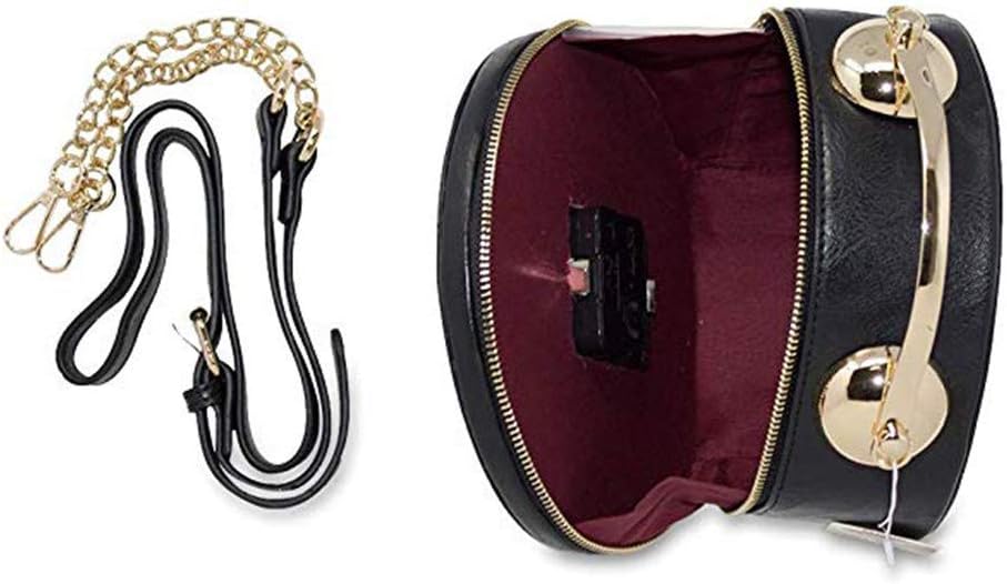 Content-oriented brand, taste and quality and want to be the perfect, elegant and fashionable trend. Occasion: wedding, banquet, prom and other special occasions. Dating, family reunion, friends party and other daily events. Delivery content: 1 x Handbag Product Category: Retro alarm clock shape handbag Material: PU Lining texture: polyester cotton Fashion style: chain bag Package internal structure: mobile phone bag Opening method: Size: length 20cm* width 10cm* height 20cm Structure: main bag, back pouch Notes: Colors shown may vary slightly from actual color due to screen calibration 1 inch error range is allowed due to different measure methods. As an honest Amazon seller, we offer convenient and efficient after-sales service; Measurements refer to height, size can measure 2cm / 1inch inaccuracy due to hand. Clock handbag Size: 20 x 10 x 20H cm It can work as a real clock after put a AA battery on, but we don't provide battery due to the ship problem.