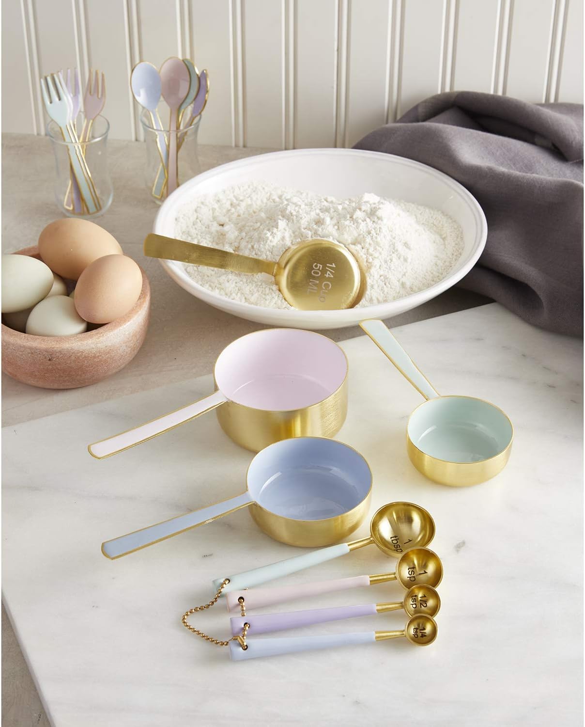 Beautify your baking process with these colorful pastel-hued measuring spoons! They make a sure-to-please gift for a garden party or housewarming present Created with brass and enamel hand wash only