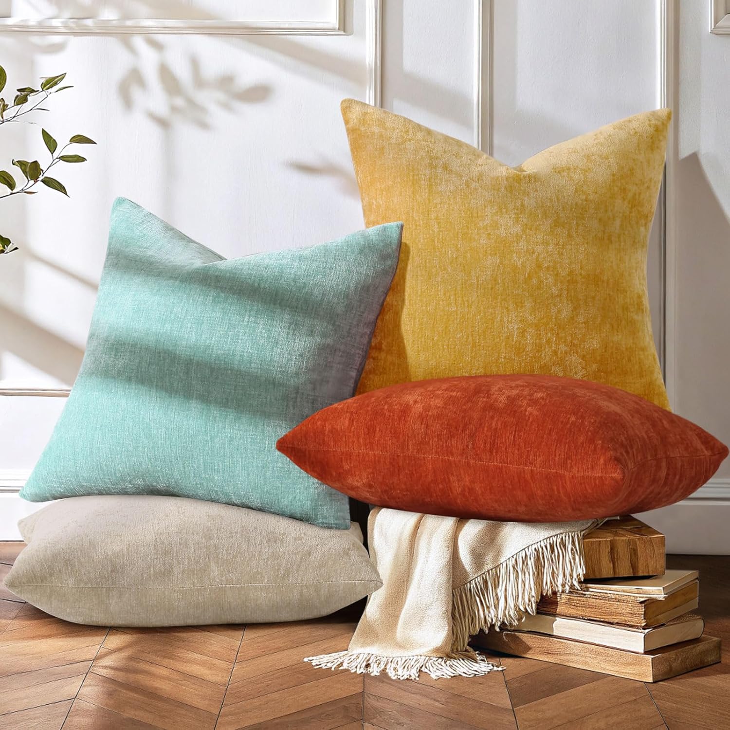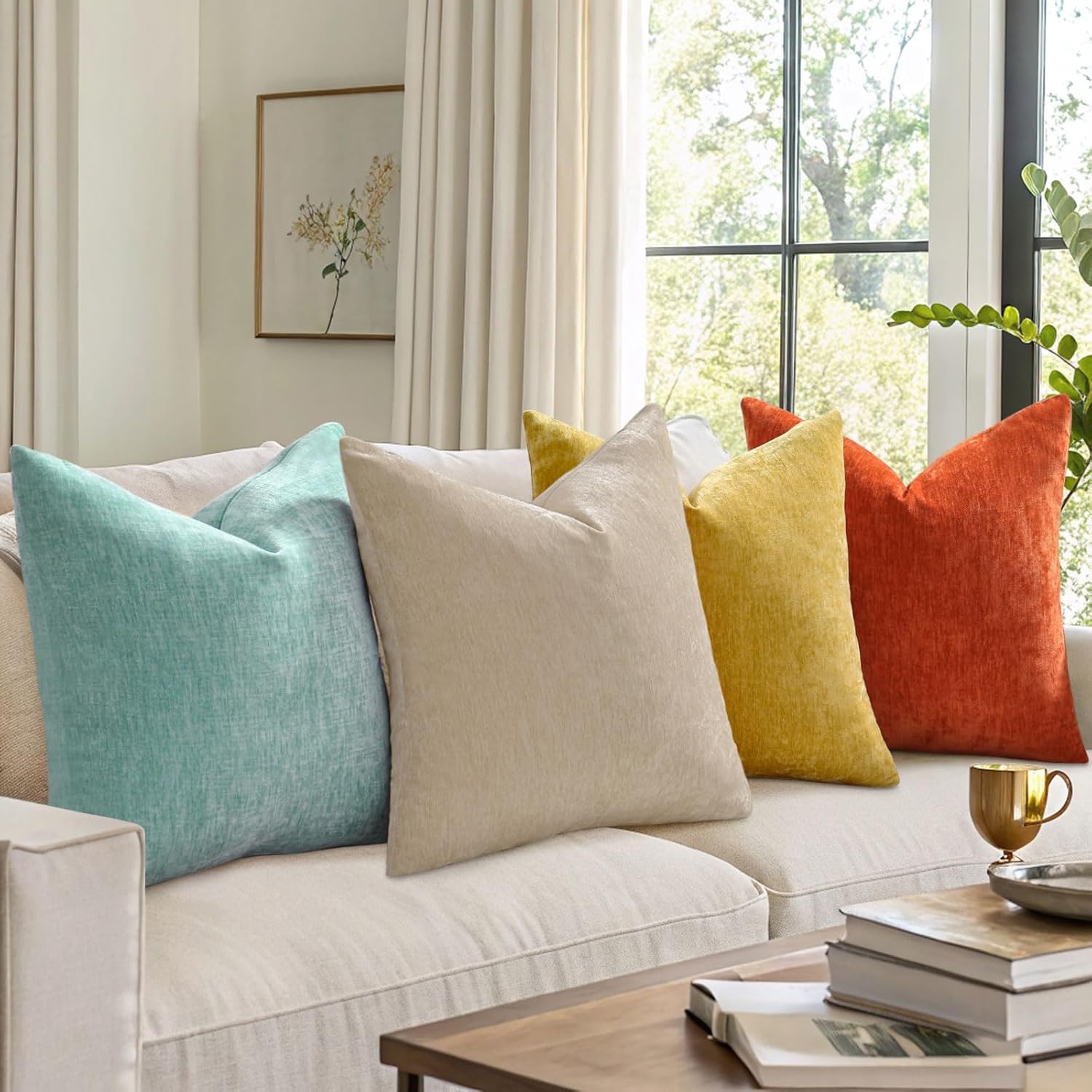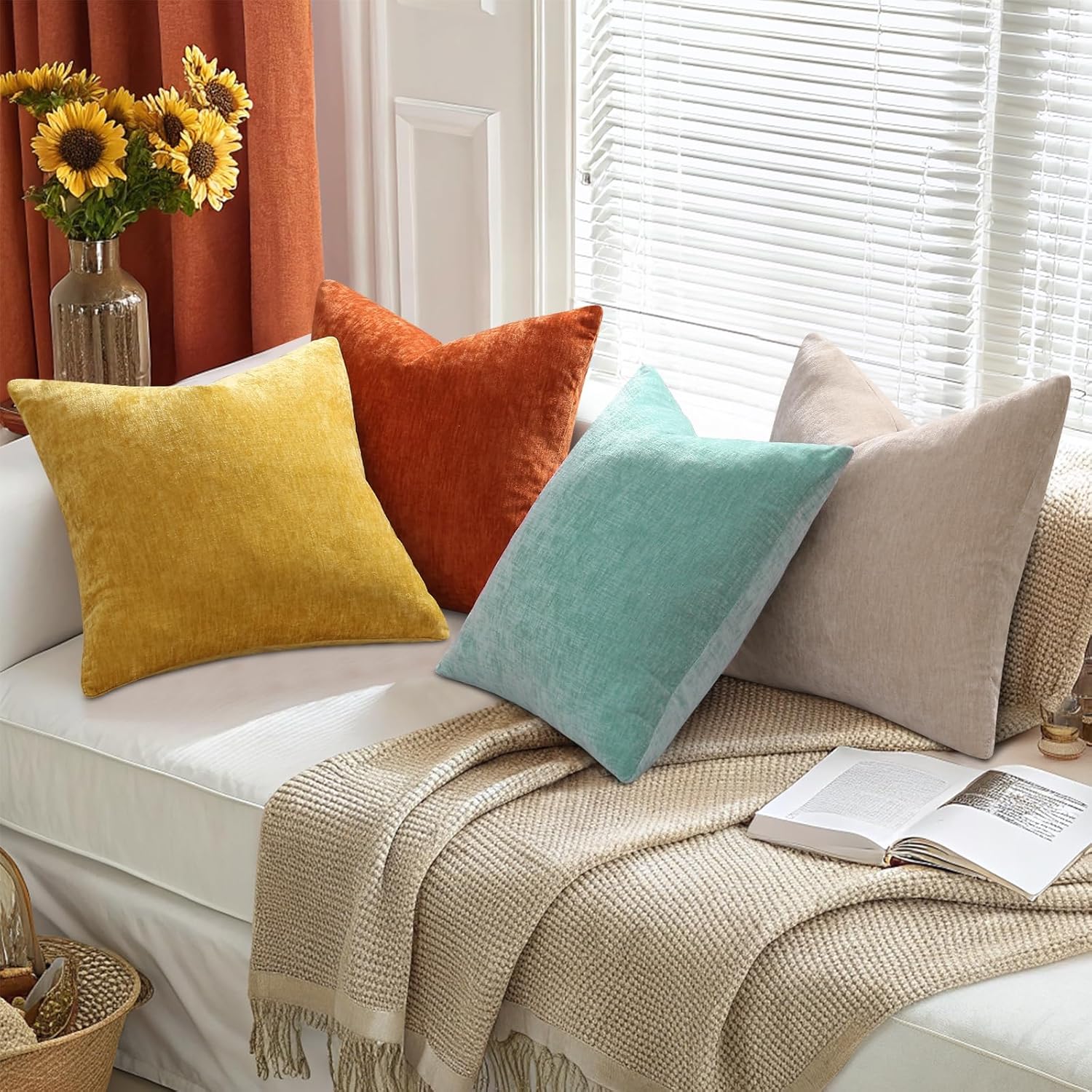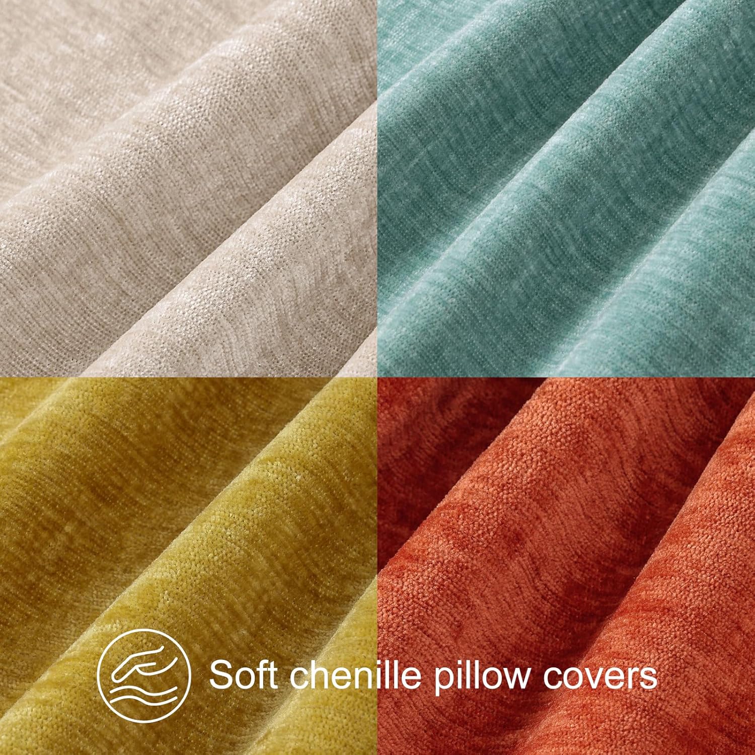 decorUhome Decorative pillow covers are the perfect choice for decorating your home. Transform your living space into a haven of comfort and style with decorUhome Decorative Pillow Covers! Crafted from premium soft chenille, these pillow covers offer an indulgent touch that will make you never want to leave your couch. The ultra-soft and skin-friendly material caresses your skin, while the thick and sturdy construction ensures long-lasting durability. Available in three versatile sizes - 16x16inches/40x40cm, 18x18inches/45x45cm, and 20x20inches/50x50cm - and a stunning palette of 12 colors including cream white, white, beige, aqua, black, navy blue, sage green, burgundy, grey, yellow, and rust, you'll find the perfect match for any decor theme. Whether adding a pop of color to your bedroom, creating a cozy reading nook in the living room, or sprucing up your patio garden, these covers are the ideal choice. Each package includes 4 stylish pillow covers (inserts not included). Worried about the durability? Our chenille material has a gentle elasticity that not only provides maximum softness but also maintains its shape and resists wear and tear. And that line in the middle of the pillowcase? Don't fret! Once you insert the pillow, it will fade away within a day or two. For a quicker fix, simply wash and dry the covers, and the line will vanish. If any traces remain, a gentle rub with your fingers will do the trick. With decorUhome Decorative Pillow Covers, you can effortlessly elevate the look and feel of your home. Order now and experience the perfect blend of comfort and style!