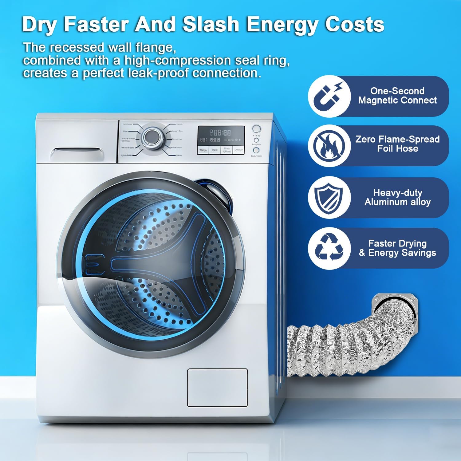 Tired of the Dryer Vent Struggle? Your Solution Is Here. Imagine a dryer vent system that connects with a satisfying snap, cleans in seconds, and installs without calling a handyman. Our Magnetic Dryer Vent Kit is engineered to turn that imagination into reality, combining cutting-edge convenience with uncompromising safety. How the Magnetic Revolution Works Step 1: Snap – Align the magnetic adapter to the wall flange. Powerful magnets create an instant, secure seal. Step 2: Clean – When it’s time, simply pull the hose off for unobstructed access. No screws, no struggle. Step 3: Reconnect – The self-aligning design guides the hose back into perfect position. Snap—done. This isn’t just an upgrade; it’s freedom from a tedious chore. Built Like a Fortress for Your Home’s Safety We don’t compromise on materials. Every component is selected for maximum protection: Shell: Heavy-duty, heat-resistant aluminum alloy. Hose: Fire-retardant, flexible aluminum foil (Zero Flame Spread Rating). Clamps: Rust-proof stainless steel for a lifetime grip. Seal: High-temperature silicone gasket for an airtight lock. This kit doesn’t just connect your dryer; it actively guards against lint accumulation—the leading cause of dryer fires. The Smart Solution for Any Laundry Setup Tight Spaces? The flexible hose and self-aligning design conquer awkward corners. Misaligned Outlet? The adjustable hose handles offsets seamlessly. DIY Friendly? All hardware and clear instructions are included. You can do this. What’s in the Box & Important Note Magnetic Adapter x1 Recessed Wall Flange x1 Flexible Aluminum Foil Hose (4” Diameter) x1 Note: Hose length is 15 inches (2.6 ft). You may need to connect it to your existing hose for longer runs. Stainless Steel Clamps x2 Mounting Screws & Anchors x1 Set Backed by Our Promise Your satisfaction is guaranteed. Enjoy reliable performance protected by our 1-Year Warranty and supported by a team ready to help. Upgrade your laundry room from a hazard to a haven of efficiency. Add to Cart now!