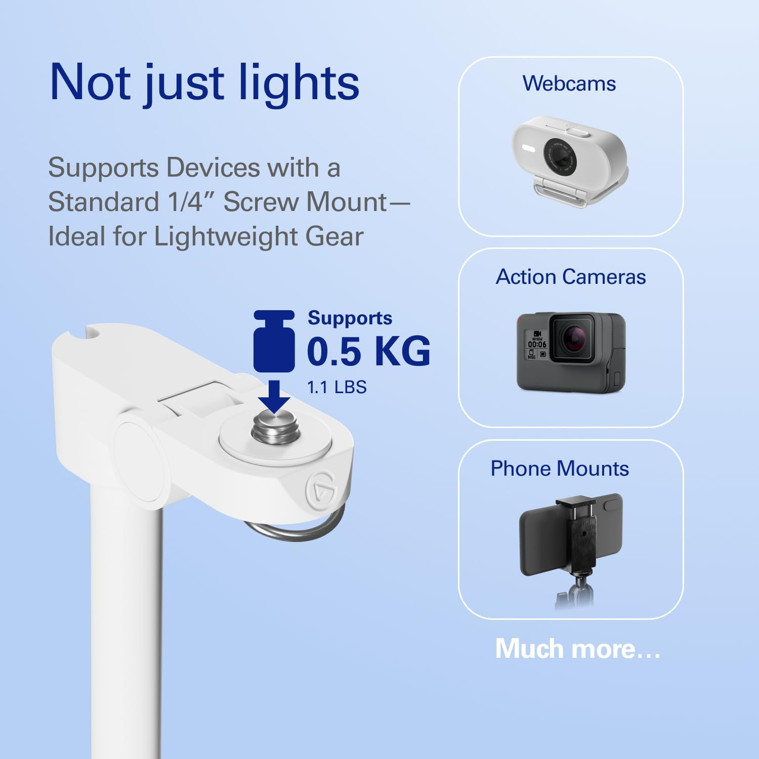 Made especially for Key Light Neo, this stand moves freely around your desk. Place lighting right where you need it, while keeping your view clear. In the Box: Weighted base, Light stand, Headset holder, Cable clips (x2), Base screw