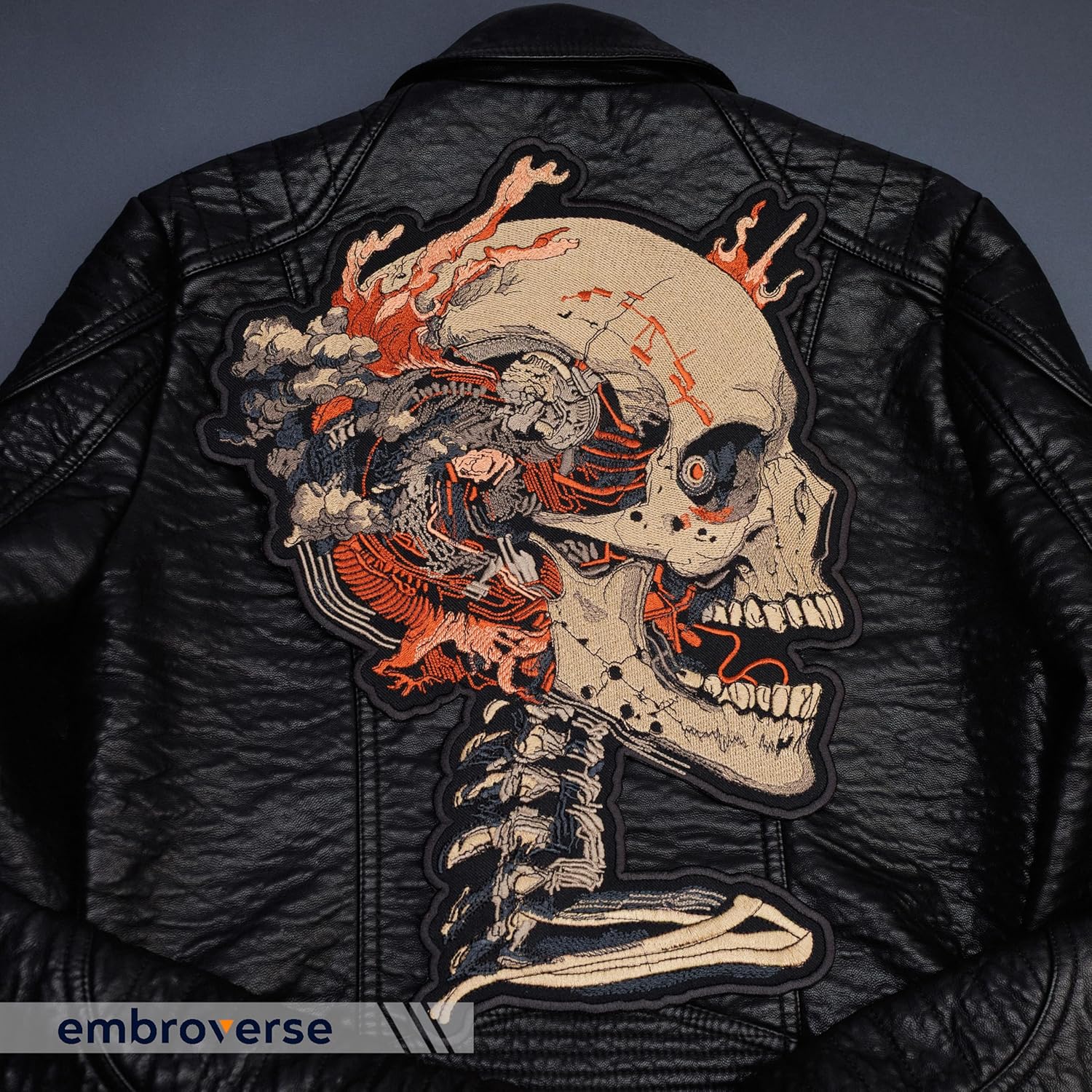 Inject biotech terror into your wardrobe. This oversized Anatomical Cyberpunk Skull patch reveals sinewy circuits, exposed bone, and smoking debris—stitched in haunting detail with color-fast thread on a heavy twill base. Our upgraded iron-on layer fuses quickly to denim, leather-look cotton, or canvas; add optional top-stitching for motorcycle-level hold. Hand-finished edges defeat fray and keep the art razor-sharp, whether you’re shredding onstage, stalking a con floor, or upgrading horror décor. Own the night—wear biomech mayhem proudly.