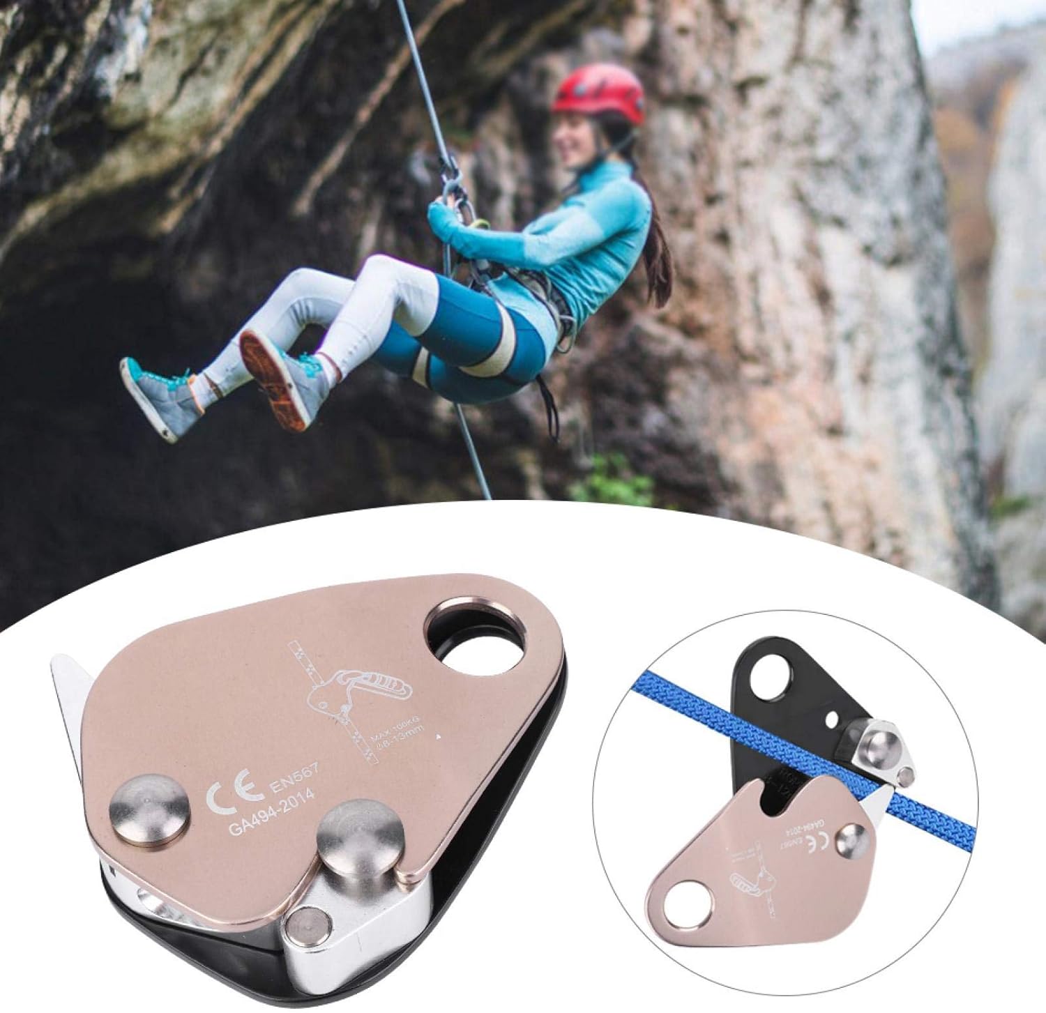 Features: 1.Made of quality aluminum material, anti-deformation, sturdy and durable. 2.The connecting hole is used to connect the main lock, and then the main lock is used to connect the safety belt or rope. 3.It is used to prevent teeth from sticking the rope with each other, so as to grab the rope. 4.According to different rope diameter, adjust the rope catcher to the right size, get better effect. 5.Suitable for Mountaineering, rock climbing, development, rappelling, aerial work, engineering protection, etc. Specifications: Material: aluminum Color: As picture shown Size: Approx. 9x7.5x3ccm/3.5x3x1.2in Packing List: 1 x Rope Descender