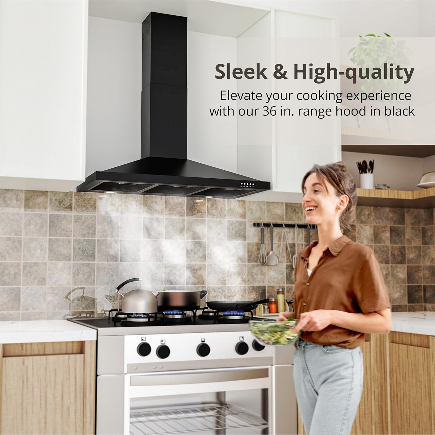 | Included Components | 3-Prong Plug; Air damper; Screw pack, 36 inch Range Hood in black, CC110 Charcoal filter; Grease filter; Aluminum flexible duct, Chimney; Mounting bracket, User manual; Installation template |