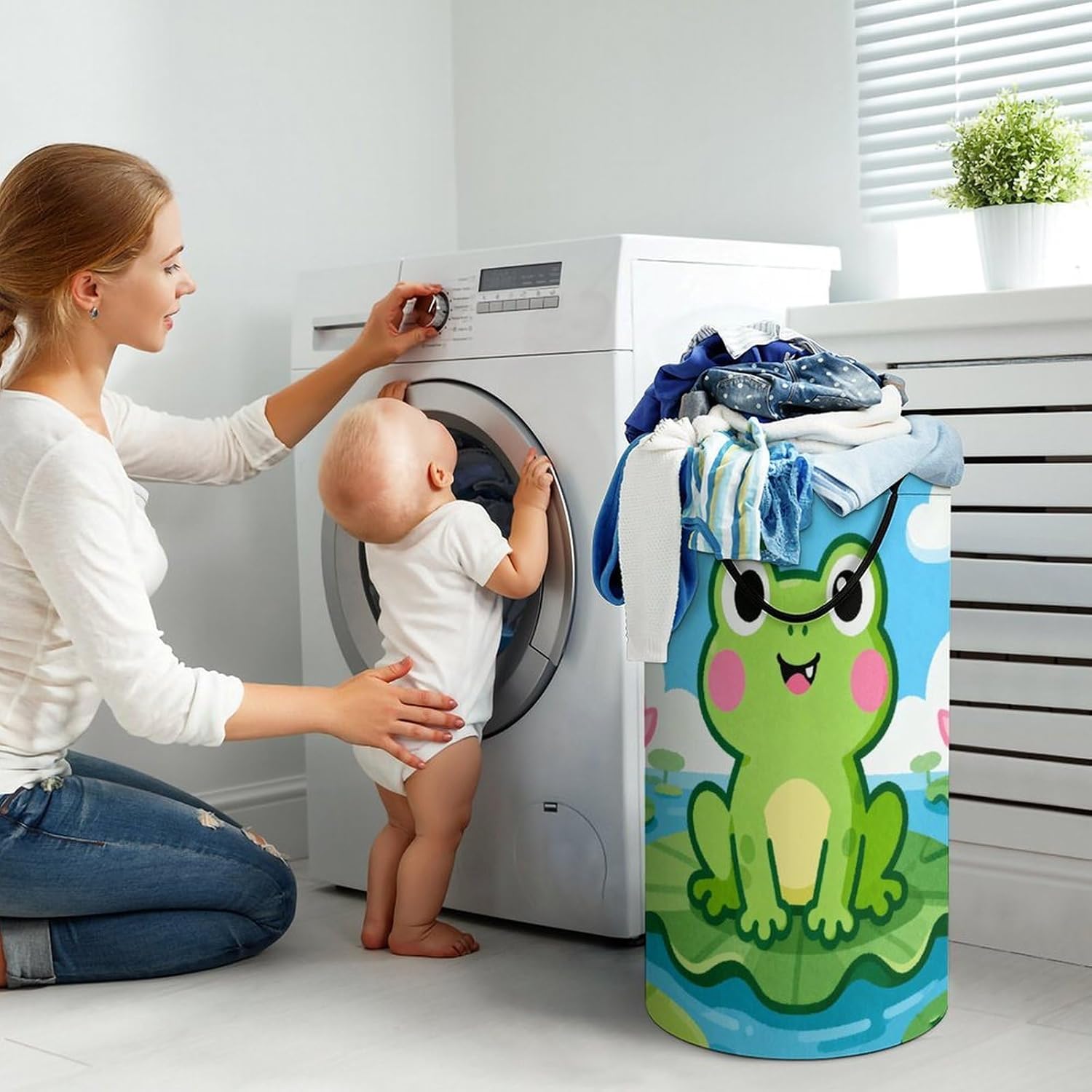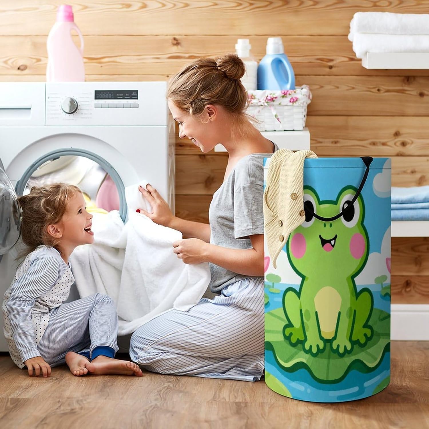 The pattern of the Frog hamper is printed with exquisite patterns, which makes the product more attractive.Chic design allows it to be used in the living room to hold throw blanket, pillows, and reading materials, as well as in the bathroom for towels, or as a laundry hamper.The laundry hamper adopted collapsible design, equipped with handles. It is lightweight and portable for using, storing, and moving conveniently.Frog Clothes hamper is suitable to store dirty clothes washing, place in the room to store toys, and other household goods, keep the house clean and tidy. Perfect laundry hamper for home, office, closet organizer, bedroom, bathroom, college dorm, etc.Gets out of your way when you need it to. This storage basket or laundry hamper is a good gift, which not only meets everyday storage needs but also carries deep care and love, a perfect way to turn thoughtfulness into warmth.
