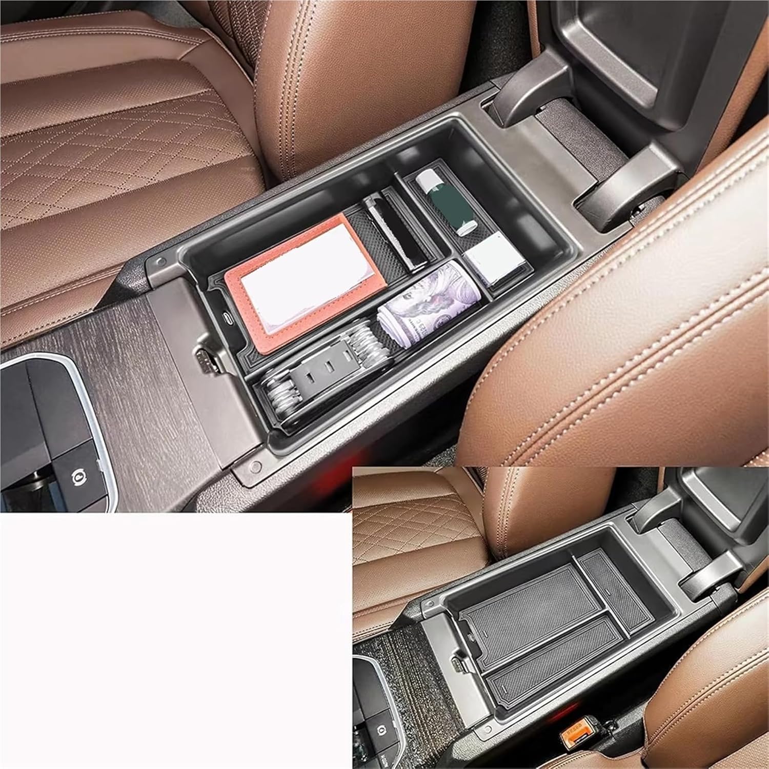 ✨Feature:Durable and well made, accurate fitment and easy installation.It can store your coins, change, parking card, and other little stuff.Keep your armrest storage in a more organized shape, It also shows a new interpretation for your life and a new fashion element for your car.Made of high-quality material, durable.Ideal for auto DIY,a perfect replacement and decoration.📦Package include:1 x Car Central Armrest box Storage TrayOnly the above package content, other products are not included.🔨Installation Instruction:Easy Simple installation, Uses Existing Holes, No Drilling Required.No Damage,no need of welding.