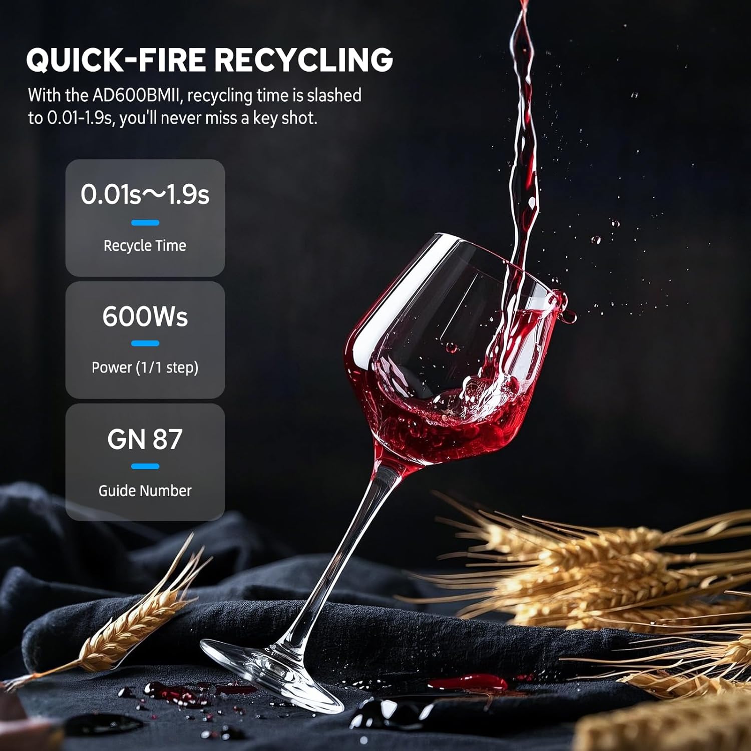Included Items1x Transmitter FT433 1x Receiver FR433 1x AD600BMII Flash Body 1x Flash Tube1x Reflector 1x Battery1x Protection Cover1x Charger1x Power Cord