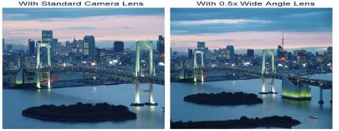 Lens: Power: 0.5x (0.48x Actual) time conversion factor of your current lens setting plus a Macro mode., Optical System:Conversion type; mounts on front of existing lens., Mounting System:Screw type in front of existing camera lens into the filter accessory threads., Optics:Designed to maximize use day and night with coated optics to provide maximum image transmission with minimum distortion., Auto Focus:Utilizes camera auto focus system., Adaptability:Maintains all the camera functions plus it provides 0.5x (0.48x Actual) wide angle lens conversion power., Macro:The Macro mode is accomplished by unscrewing the front lens assembly and using the section labeled Macro with your existing camera lens., Accepts 82mm Filters., Includes lens cap, bottom cover, & pouch. Made In Japan.