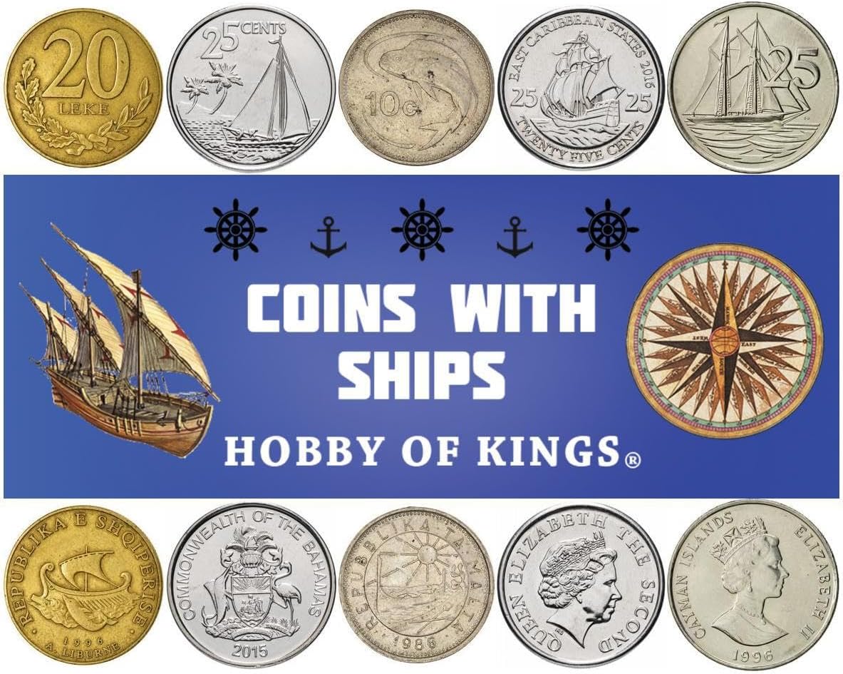 20 fantasy coins featuring ships. Includes galleons, triremes, caravels, frigates, cogs, carracks. Maritime history designs. No duplicates. Please note: These are souvenir coins and not legal tender.