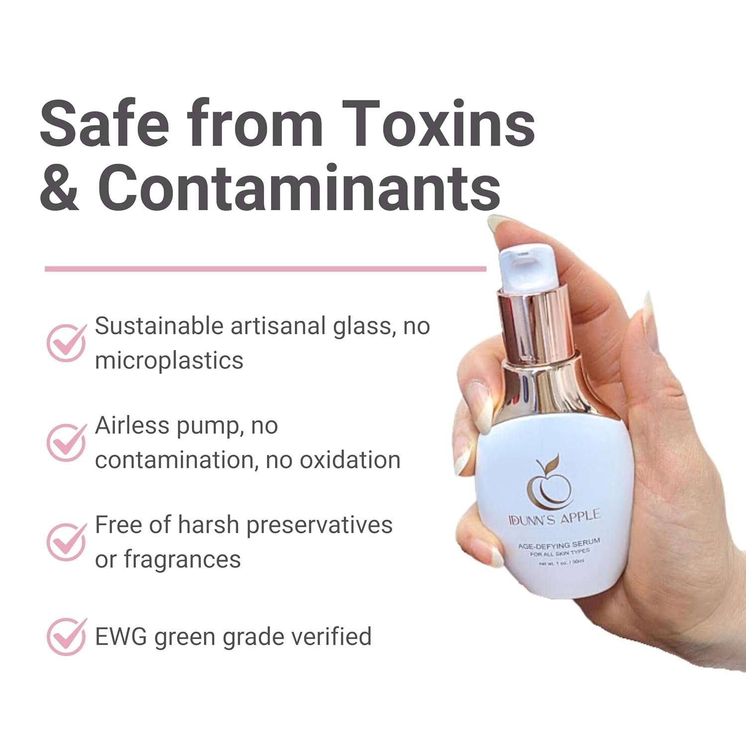 Idunn’s Apple Age-Defying Serum is a premium anti-aging serum designed to hydrate, smooth, and rejuvenate skin with a clean, minimalist approach. Inspired by the beauty of the Nordic region—where purity and resilience define both nature and tradition—this advanced formula merges science and nature to deliver visible, lasting results. Named after Idunn, the Norse goddess who safeguarded the magical apples that kept the gods youthful, this serum embodies timeless renewal and vitality. True to Nordic skincare philosophy, this formula is ultra-lightweight and non-greasy, yet highly effective—crafted to defend skin against dryness, environmental stress, and the challenges of harsh climates. Enriched with stabilized Vitamin C, hyaluronic acid, Vitamin E, ferulic acid, and green tea extract, it delivers potent antioxidant protection, smooths the look of fine lines, and supports natural collagen production. At its core is the PureFusion complex, a unique blend of lab-purified water and Icelandic spring water naturally filtered for centuries through volcanic lava rock, providing deep hydration and essential minerals to nourish and strengthen the skin. Developed by MD/PhD scientists specializing in epigenetics, it’s suitable for all skin types, including sensitive skin. Housed in sustainable glass with an airless pump to protect purity and potency, this serum is free from parabens, phthalates, synthetic fragrances, and harsh preservatives. Proudly made in New York, Idunn’s Apple brings you luxury skincare that reflects the purity and enduring beauty of its Nordic inspiration.