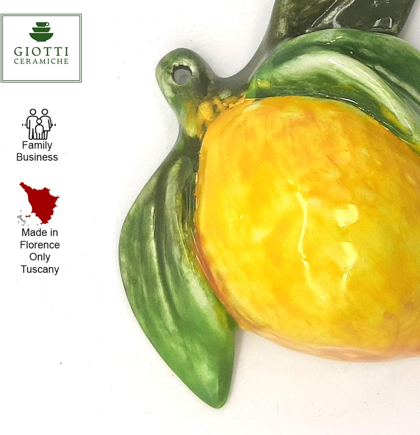 This stylish tuscan Ceramic Lemons decor for kitchen brings Italy to your home . Ceramic multi color Artificial fruit is hand painted . Tuscan decor easily creates the classic chic look for home kitchen, bistro, restaurant. Coordinate with other Tuscany kitchen decor or create nice ambiance when serving any Italian meal..✔Save - Special set of 3 Pieces✔This Artificial Lemon is made by hand in Tuscany - Italy. The hand painted Ceramic Fruit is about 6 inch . T✔Perfect for decorate wall in Home ,House, Shop ,Kitchen and at the festivals✔These Artificial ceramic Fruit is easy to hang on the wall. Fine hand craft make it look like a real Lemon,✔This wall hanging ceramic Lemon is use at indoor and outdoor, such as bedroom, living room, dining room, office, garden, coffee shop✔Top Quality: High quality ceramic Our Tuscany kitchen accessories are handed painted..✔Great Gift: for those that love Italian kitchen decor. Give as Mother's day, birthday, holidays, Christmas, wedding, housewarming and hostess gifts, perfect to include in a gift basket. Or buy for your kitchen...These vibrant designs will maintain their color..Hand-painted by artisans in Florence Italy , these rustic home decor items include dinnerware sets, cups, breakfast, salsa & pinch bowls, tapas & dinner plates plus patio & garden pieces.Giotti Ceramiche - Florence Italy -