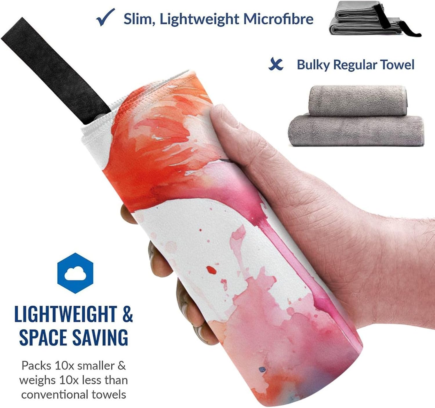 designWatercolor Flamingos compact towel for camping are designed with one-sided printing. The towels are equipped with special packaging bags and carabiners, which are convenient for packaging and hanging, and can be hung anywhere to dry quicklymaterialcompact towels for swimming is made of microfiber, which is more absorbent than standard towels, dries quickly, is lightweight, and small enough to easily fit the towel into a gym bag or backpackscene cotton towel for beach carabiner on the bag, can be attached or packed into your bag, the beach towel can also be used as a sports towel, travel towel, yoga towel or used as a beach, bathing, swimming pool, swimming, boating, sunbathing, mats for spa, sauna, water park, climbing, fitness, yoga, travel, camping, hiking, picnic, travel, outdoor and sports, etccomponentbeach blanket for swimming have buckle webbing, easy to hang and air dry, pvc packaging bag, equipped with a carabiner, easy to store and carrywashinglightweight towel for swimming machine washable, wash before first use, just hand wash or machine wash, air dry