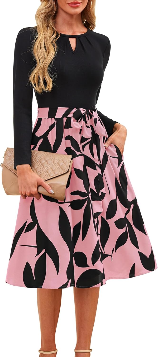 The Casual Long Sleeve Flowy Midi Dress is very modest and flattering.You can easily dress it up or down. Long Sleeves;Midi length;Keyhole Crewneck Design;Stretchy Knit Ribbed Bodice Top;Belt tie waist;2 side functional pockets;Lined Skirt;not see through ;Mixed media dress The soft comfy material creates a flowy and flattering silhouette. Just pair with your sandals or heels;wedges; boots or your sports shoes and a layered necklace to complete the look; your outfit is ready with little to no effort! work dress;casual business dress;maternity dress;church dress;travel dress;baptism dress for women;teacher outfits for women;a line dress;modest dres;fall dress;spring dress;winter dress