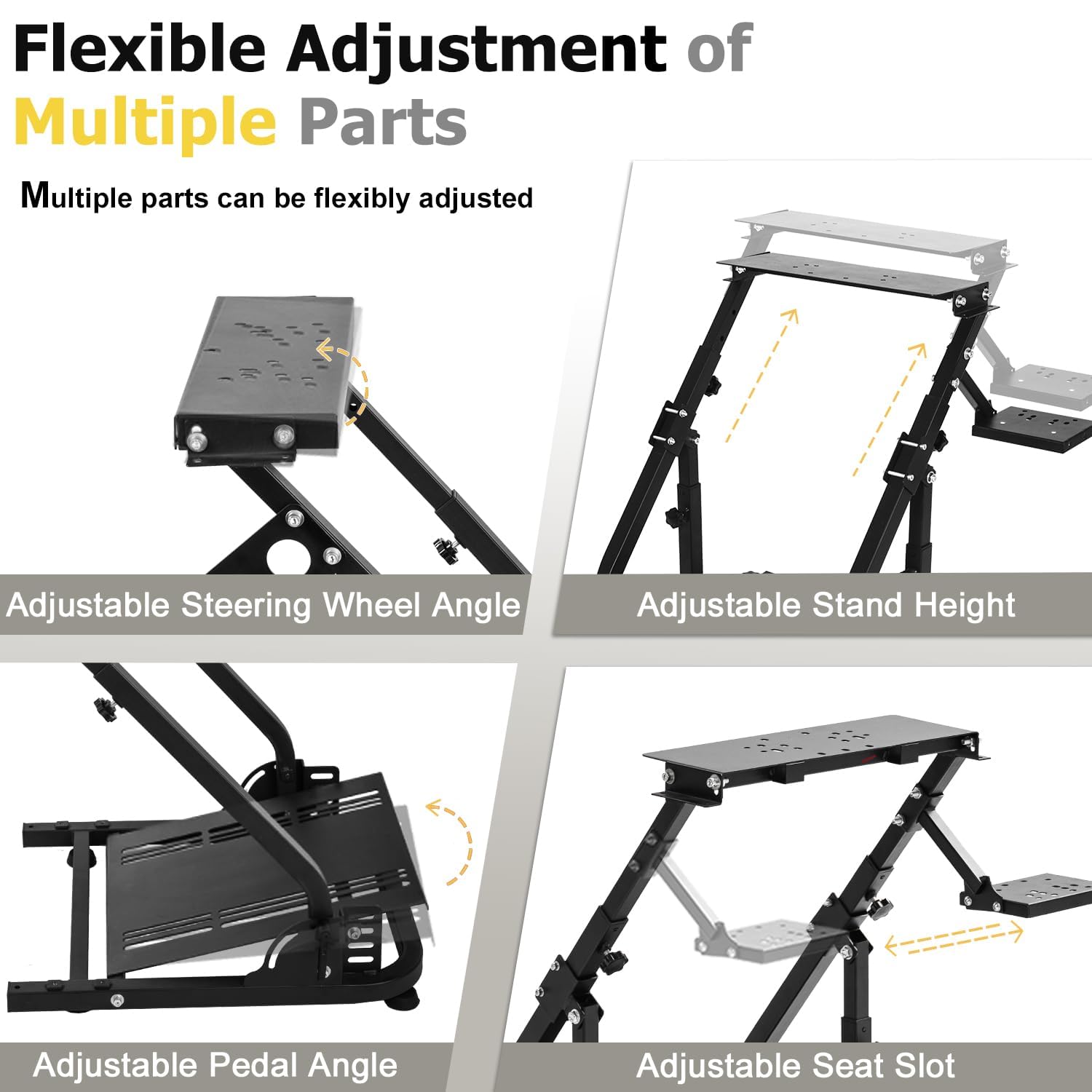 | Additional Features | Convenient Expansion: Seamlessly compatible with professional seat brackets for easy upgrading to a professional driving environment., Double Stability: The reinforced column design eliminates shaking during intense driving simulations, ensuring precise control., Easy Storage: The quick-folding design allows for convenient storage in cabinet gaps after use, saving space., Upgraded Durability: The added column enhances fatigue resistance, making it suitable for long-term, frequent use., Vibration Optimization: Rubber pads at the column base absorb vibrations, enhancing the realism of driving simulations. |