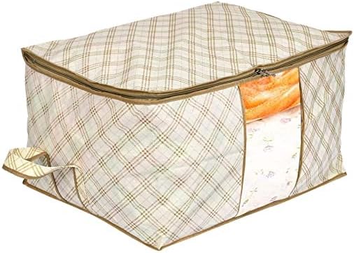 UNICRAFTS Under bed storage bag is made of non-woven material so this is very durable, long-lasting and multipurpose. This is used to store blankets, clothes, quilts, coats and other garments for long periods of time. This can be folded back when not in use and it collapses flat for saving precious storage space. This has two way zipper and two soft grab handles makes it easy to pull out or replace from under the bed. This has a large transparent sheet by which you can see what is inside the under bed bag remotely. This is the best space saver product.