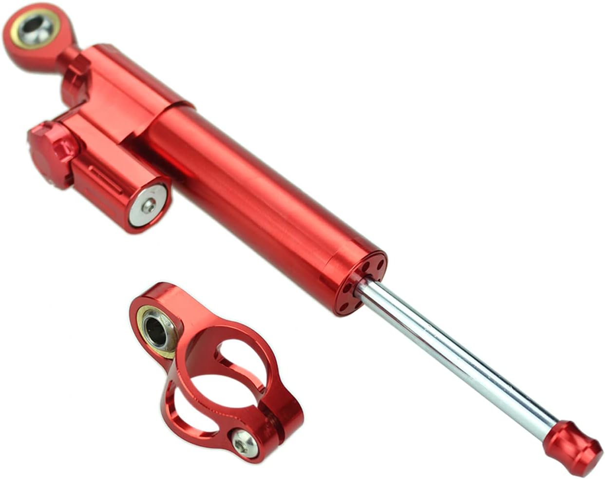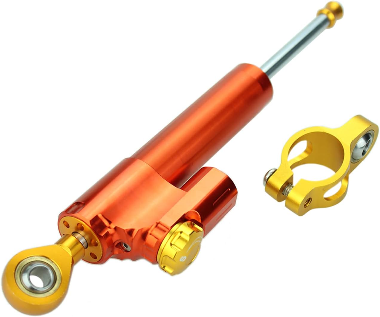 Fitment: Universal Fit for most motorcycle 600CC/Streetbike/Sportbike/ATV/UTV/ect. Feature: Material: High quality T6061-T6 aluminum alloy. Condition: 100 % brand new. Variousable Colors: Black/Red/Sliver/Gold/Green/Blue/Grey/Orange/Purple. Length Size: 25.5cm /10 in(as the picture show). Surface: CNC Finished. Others: Perfect fit and no modification is needed, no install instructions included. Package Include: 1 X Steering Damper(not including mounting kit) Note: If none bracket kit, please buy another one, if you already both have, then you can use it as follows: 1. Mounting kits went through countless tests through any riding conditions. top quality and security is guaranteed. 2. After installation, turn the head to the very right and very left to check whether there is enough room for the activity of steering damper or not. 3. Check if the steering damper and its kit reach the motorbike or oil tank. 4. If they do or the room is deficient, move the steering damper horizontally to the adequate place. 5. Complete damping system utilizes speed-sensitive technology. help keep control and reduce fatigue
