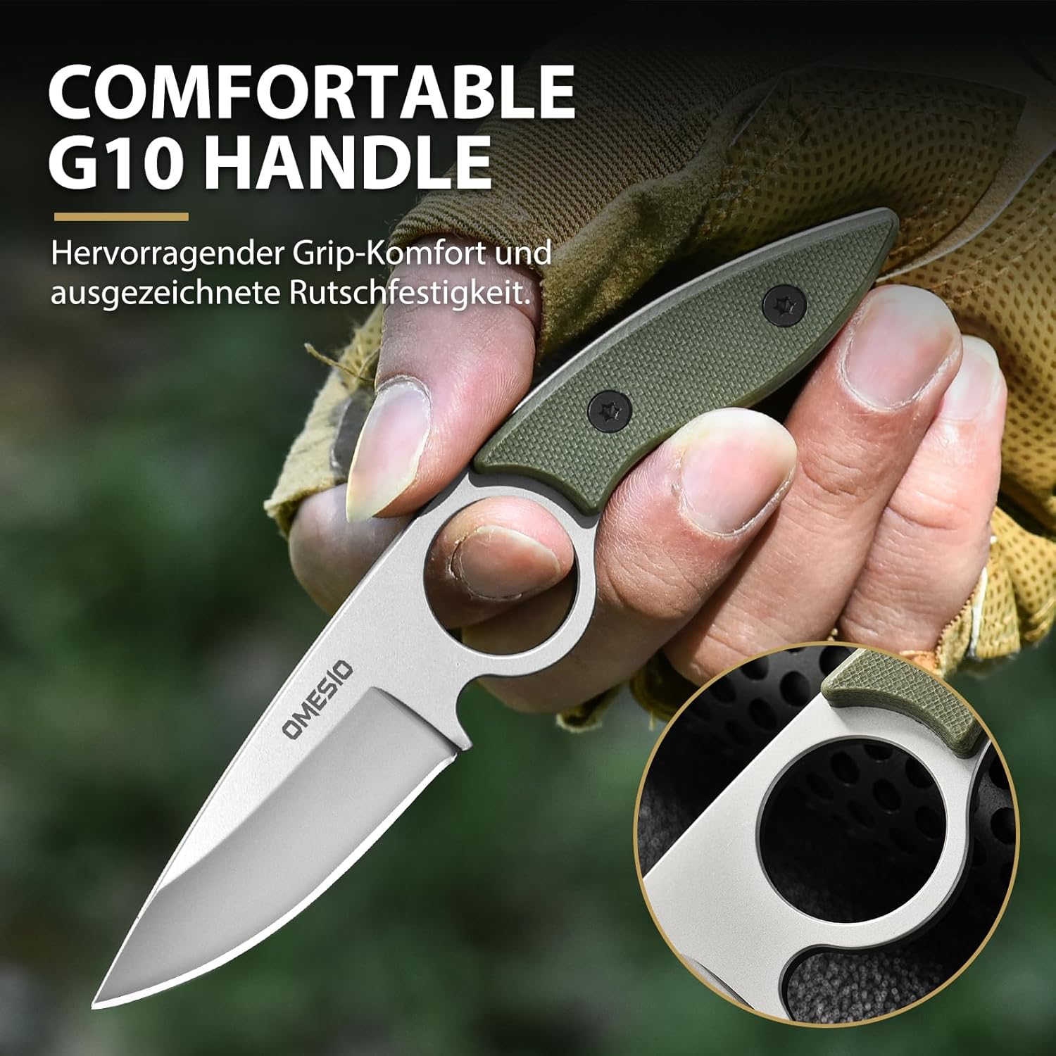 Don't miss out on this G10 handle neck knife, featuring excellent anti-slip and moisture resistance, providing optimal grip and comfort. Convenient to carry, with a total length of 5.82 inches, including a Kydex holster and necklace.