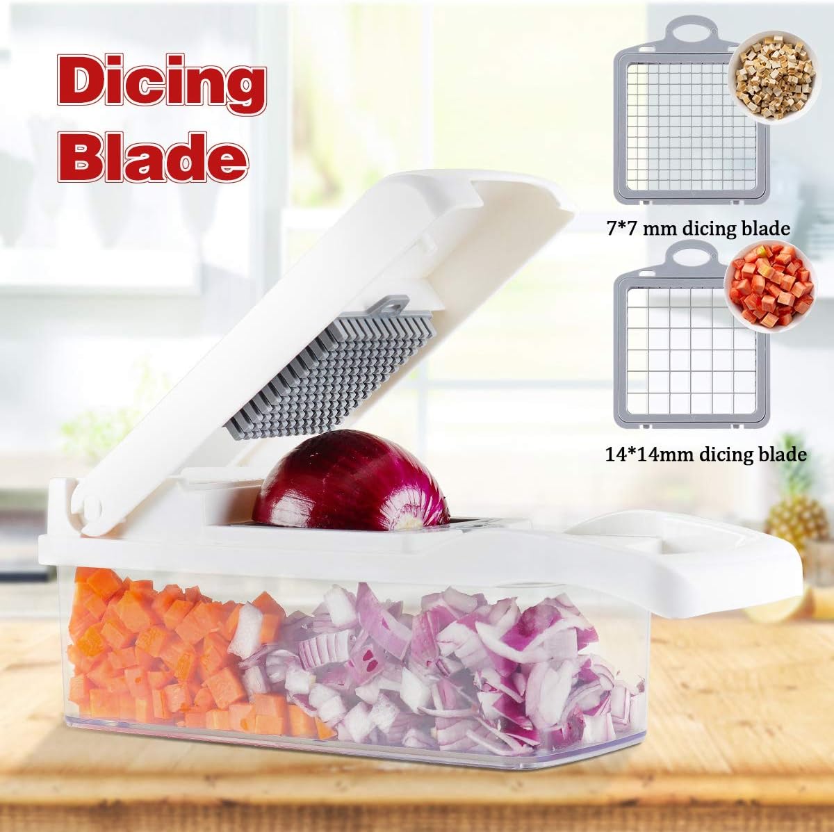 Ourokhome 12 in 1 Professional Mandolin Slicer for Kitchen with 1.7 L Vegetable Container and Manual Food Processor Vegetable Chopper