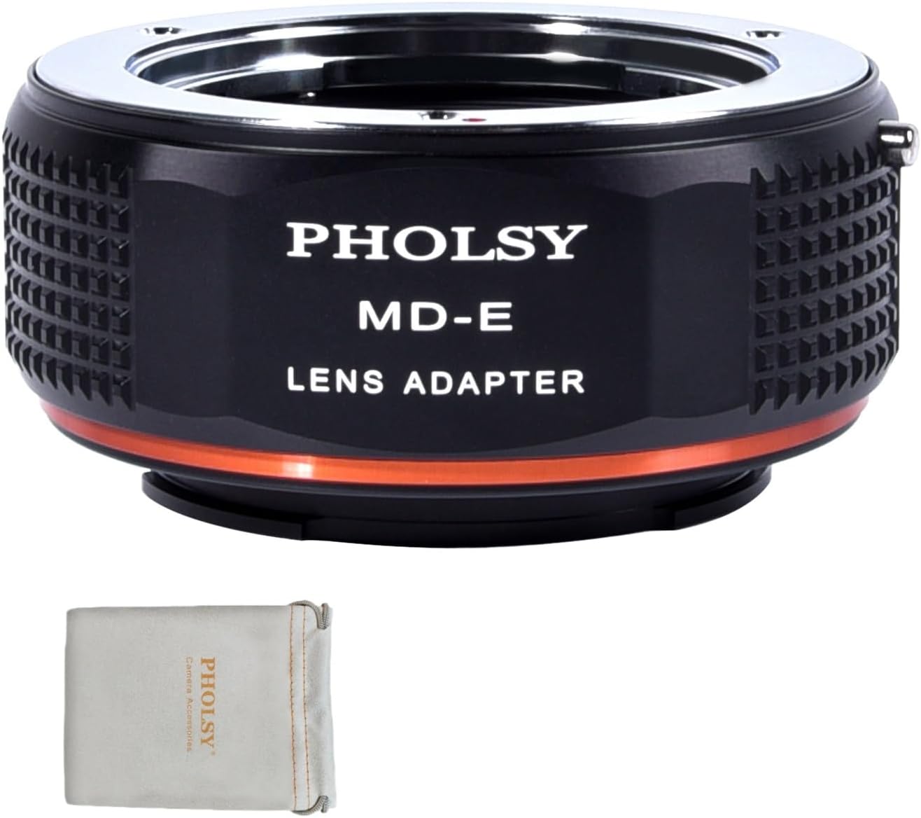 PHOLSY Lens mount Adapter. One lens mount adapter, change lenses as required, unlimited possibilities & inspiration. Keep shooting the lenses you love. Adapt without compromise. So many possibilities. Quick and inexpensive way to adapt lenses to your camera. Features of the lens adapter ring: 1, Infinity focus allowed. There is no electronic contacts or glass inside of this lens adapter, so have to manually adjust all settings (no autofocus) and no need to worry about optic degradation of your lenses. 2, Machined from hardened aluminium and copper, coated in an anti-reflection matte finish. 3, And it fits the camera and lens exactly, which is crucial for precise performance. Attaches and detaches smoothly and cleanly to the camera body. No light leakage. 4, Red and white dot marking for accurate mounting, easy to mount and dismount. 5, The improved ergonomics with the beautiful and practical tooth design provides comfortable shooting in any direction (including vertical) - even with gloves. They are stable, non-slip and safe. Package Includes: 1 x EF to E Lens Adapter 1 x Storage Pouch *Note 1: If your camera indicated "lens is not properly installed", please modify the camera menu settings. Usually called "release the shutter the lens is not installed", you can modify the settings to allow. Specifically refer to the camera manual. *Note 2: Although the lens can be mounted, there is no electronic contacts or glass inside of this lens adapter, so have to manually adjust all settings (no autofocus and aperture). Fully manual operation: Manual focusing and manual aperture adjustment can be realized by body manual exposure and aperture-priority exposure. As the lens cannot be aperture controlled by the camera body.