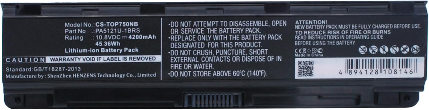 Compatible model NO:Toshib'a P000573260,PA5121U-1BRS,PABAS274,Satellite P70,Satellite P70-A,Satellite P75,Satellite P75-A,Satellite P75-A7100,Satellite P75-A7200.Specifications:Voltage:10.8Rate:45.36WhType:Li-ionCapacity:4200mAh