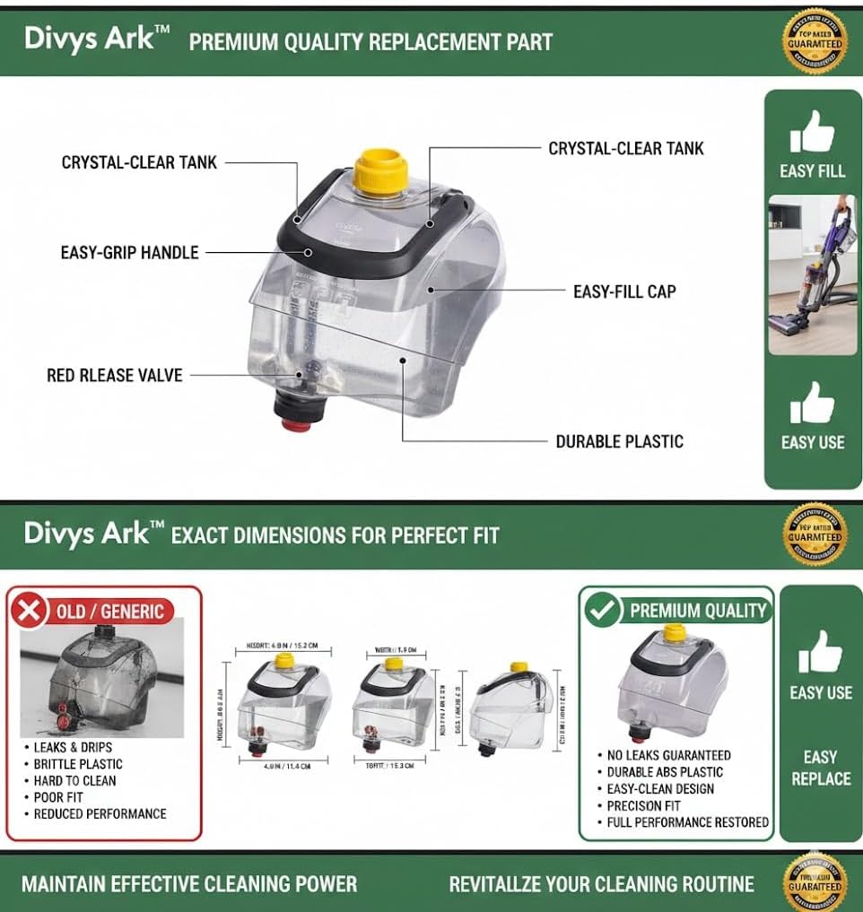 Replacement for Bissell SpotClean Pro to peak performance with this durable replacement clean water tank. Designed to fit multiple Bissell SpotClean Pro models (3194, 2505, 2458, 2891), this tank allows for convenient refilling and efficient cleaning. Made from high-quality, BPA-free plastic, it ensures safe, hygienic use and long-lasting durability. Keep your carpets, upholstery, and stairs spotless by easily replacing worn or cracked tanks without compromising the performance of your SpotClean Pro.