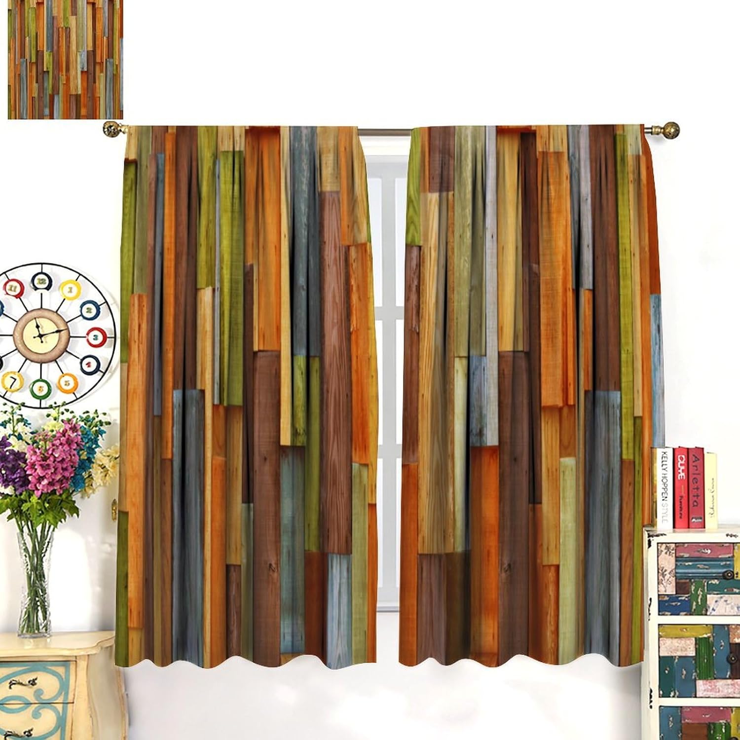 "Package included:2 panels per package. Size: One panel piece measures 27.5" (W) x 63" (L). The overall size is 55" ( W ) x 63" ( L ). About the material: Made of fiber polyester fabric.Soft touch feeling.Silky and delicate, durable, anti-wrinkle, no ball.Thick, elegant, upmarket.Good Workmanship.No loose threads. HD Printing Technology: Clear and Premier Printing.Toxic free and safe.Fade resistance. About the function: With privacy protection, decoration, and as a room divider, it is very suitable for the privacy of children's bedrooms, living rooms, and nursery rooms.Block most sunlight, ultraviolet rays, and street lights to ensure a good sleep or work in the dark when needed. Our service: We focus on customer satisfaction. If you have any questions or problems, please contact us by email."