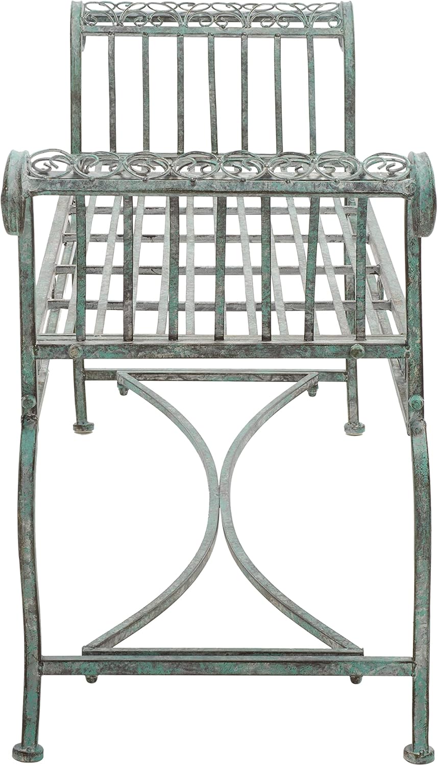 The enchanting designs of the Victorian era come to contemporary outdoor decor in this elegant Brielle Bench. Crafted of finely sculpted iron in an antique blue finish, Brielle's intricate scrolls and heart shaped details lend your garden or patio a vintage touch of romance.