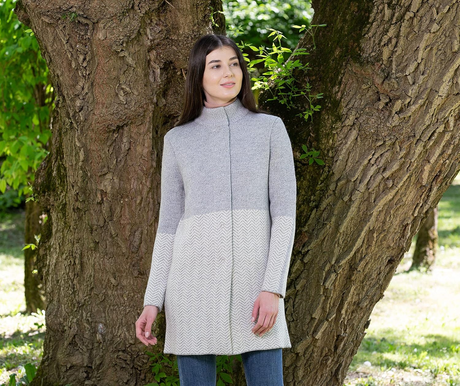 If you’re tired of the latest trends in winter fashion and admire the classiness of vintage pieces, then you will adore this Herringbone Coatigan. The elevated collar features fine ribbing and lines that beautifully frame the neck with distinction. Make this luxurious sweater a special gift for a woman with vintage glam style!