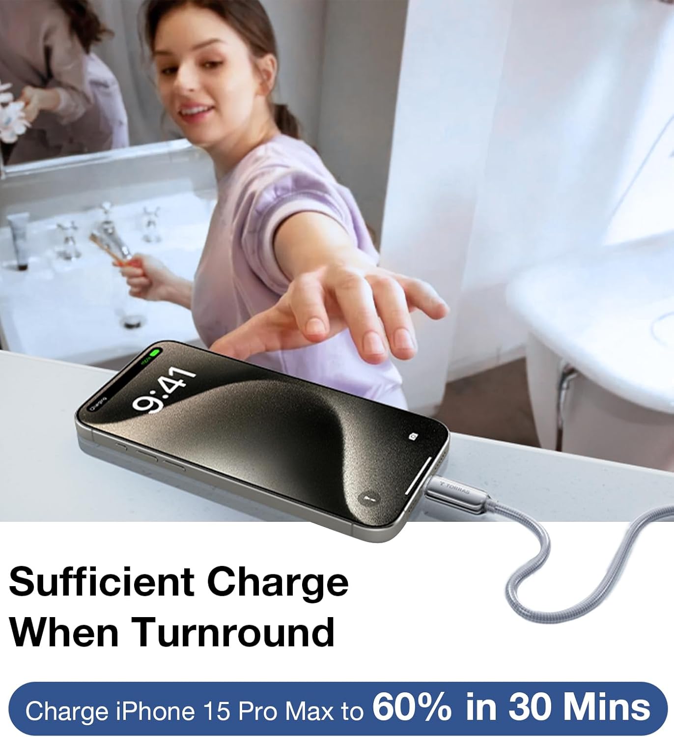 TORRAS USC C to USB C Cable (60W 6ft), Military Grade Tested USB C Charger Cable Fast Charge for iPhone 15 Pro Max Plus, Samsung S24/23, MacBook Air Pro 2020, iPad Pro/Air/Mini (Pearl White)