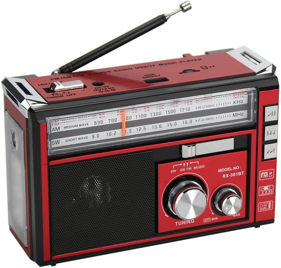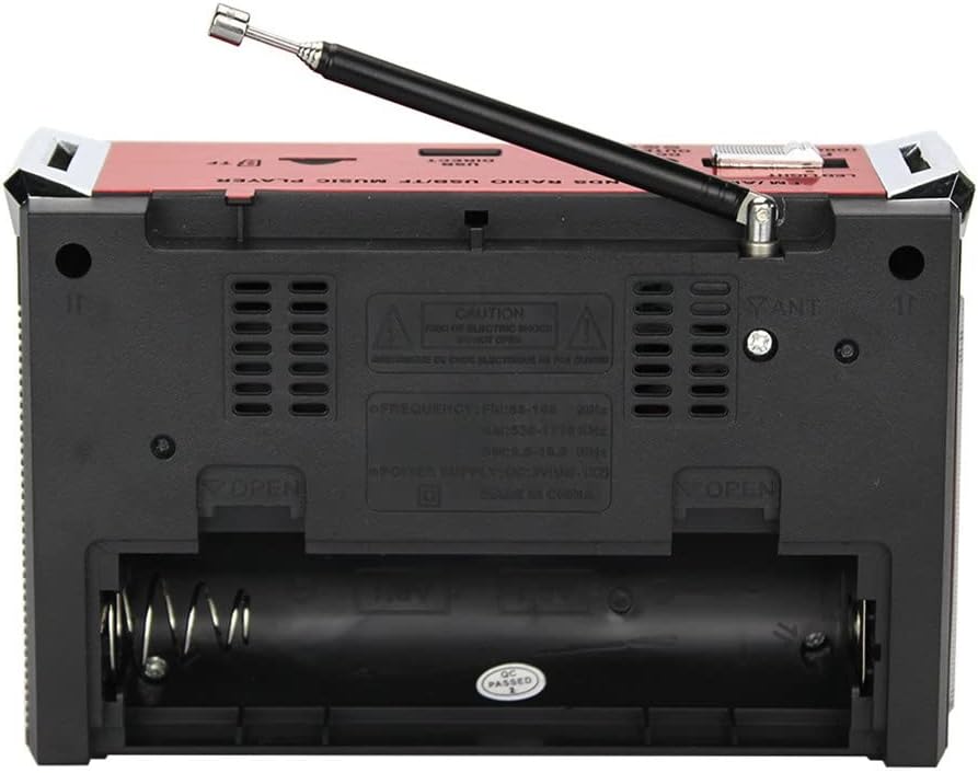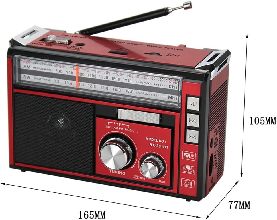 Portable FM / AM / SW 3-band radioradio integrated circuitHigh sensitivity and loud voicepermanent magnet loudspeakerBuilt in high-capacity lithium batteryLithium battery is used for power supply, with charging protection circuitRechargeable external 220V power supply / powered by two No. 1 batteries 5V charging / 6V solar panel chargingLED light two gear strong light illumination / TF MP3 playerPackage Includes:1 piece retro radioEasy to travel with palm size.