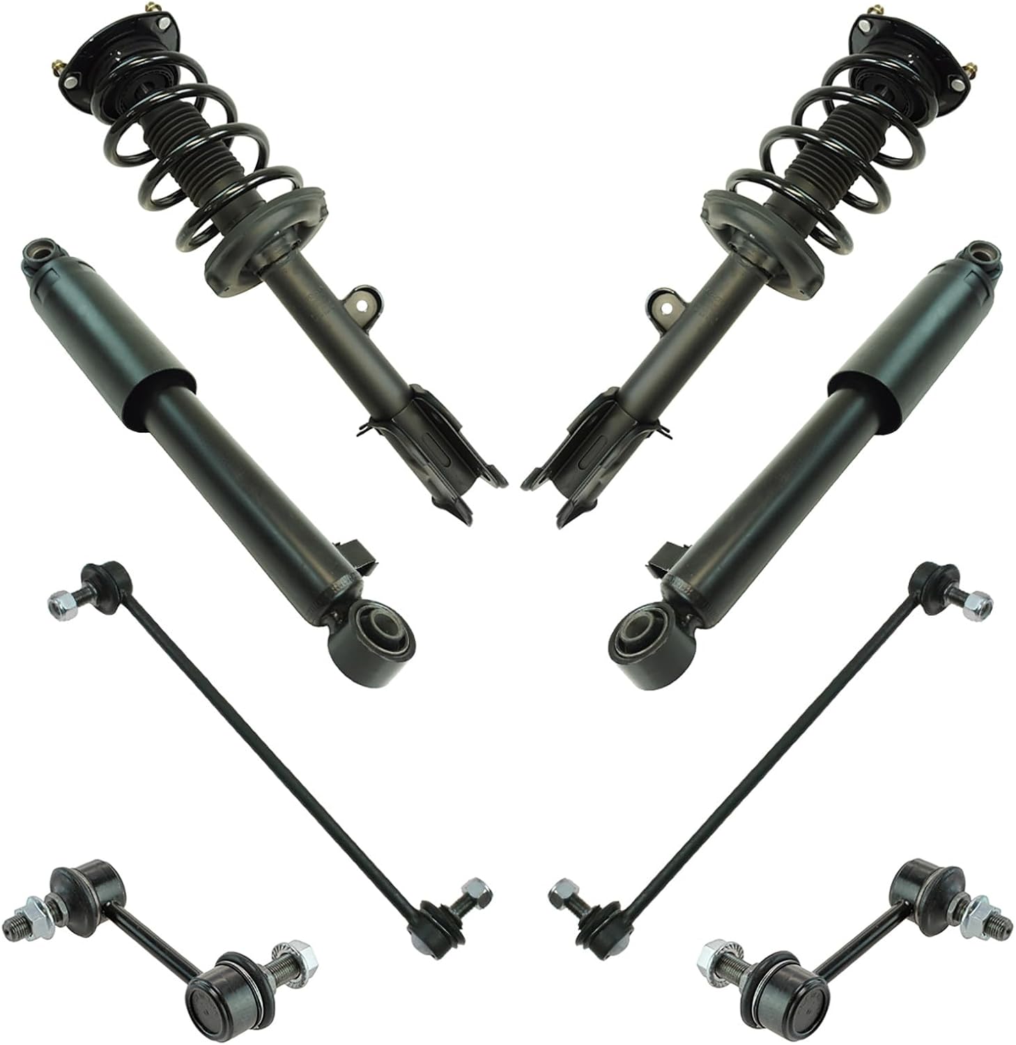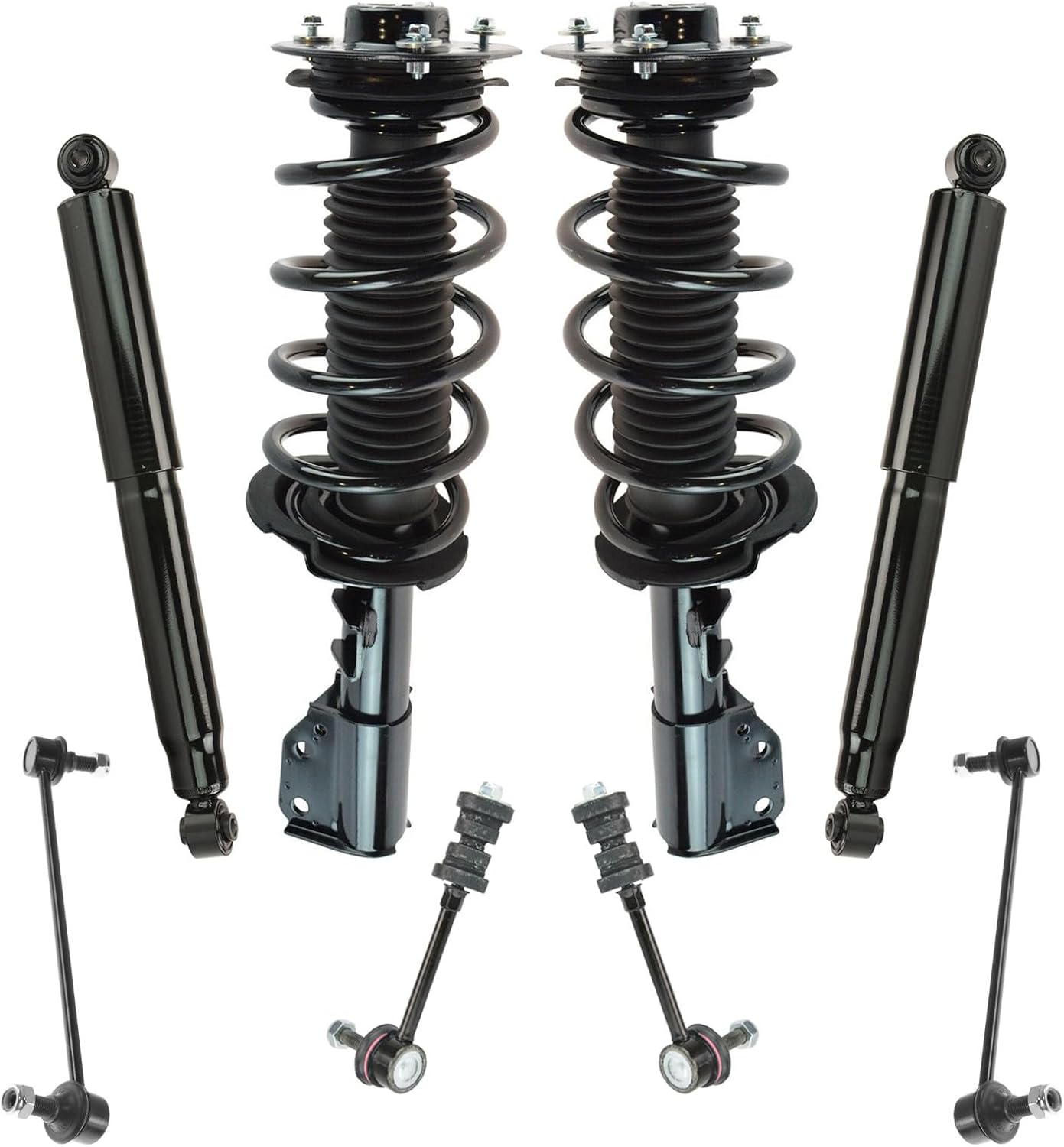 8 Piece Suspension KitKit Includes(2) Front Strut & Spring Assemblies(2) Front Sway Bar Links(2) Rear Shock Absorbers(2) Rear Sway Bar LinksFitmentVolkswagen Golf 2010-14 - VW with 55 mm Outside Strut Housing Diameter Front & RearVolkswagen Jetta 2005-06 - VW TDI without Sport Suspension Front & Rear 2005-07 - VW 2.5 without Sport Suspension Front & Rear 2006 - VW Value Edition without Sport Suspension Front & Rear 2006-07 - VW 2.0T without Sport Suspension Front & Rear 2007-09 - VW Wolfsburg Edition without Sport Suspension Front & Rear 2008-09 - VW S without Sport Suspension Front & Rear 2008-09 - VW SE without Sport Suspension Front & Rear 2008-09 - VW SEL without Sport Suspension Front & Rear 2009 - VW TDI without Sport Suspension Front & Rear 2010 - VW Wagon without Sport Suspension Front & Rear 2011-14 - VW Wagon with 55 mm Outside Strut Housing Diameter Front & Rear 2016 - VW SEL Premium Front & Rear 2016-18 - VW S Front & Rear 2016-18 - VW SE Front & Rear 2016-18 - VW SEL Front & Rear 2016-18 - VW Sport Front & Rear 2018 - VW Wolfsburg Edition Front & RearProduct AttributesQuantity: 8 PieceProduct Features Application Specific Design: No modifications necessary Anti-Corrosion Coated: Enhanced surface life Pre-greased: No additional maintenance required Kitted for Restored Performance: Improved road-feel and handlingItem DetailsTRQ suspension kits are manufactured using premium raw materials and coatings for extended service life. Each TRQ suspension component is designed to be a direct, maintenance-free replacement to the stock unit. To extend the life of your steering and suspension components, TRQ recommends replacing components in pairs, sets, or kits. All products are fit and road-tested in our Massachusetts R&D facility to ensure we deliver on our promise of Trusted Reliable Quality.Reference Numbers101-5628101-56291106017231118231118444188047818804821K0411315B1K0411315D1K0411315J1K0411315K1K0411315P1K0411315R1K0505465AA1K0505465C1K0505465J1K0505465K1K0505465R2126011257020265-1603265-1763265-176426516033444593732013QF41131545G2055445G20555512-001563536-317536-320542-031545-1554545-155554513945611606.33016606.3301797-05337G51799JTS483JTS484JTSB0088K80478K80482LS02093LS13016MK80478MK80482MK80664MS70847N97008N97014SL12055SL43255SL43255XLSL43565SL43565XLSL644SL645ST8657SUS06905SUS07055TC1315TC1325VKDS6155X52SL4375