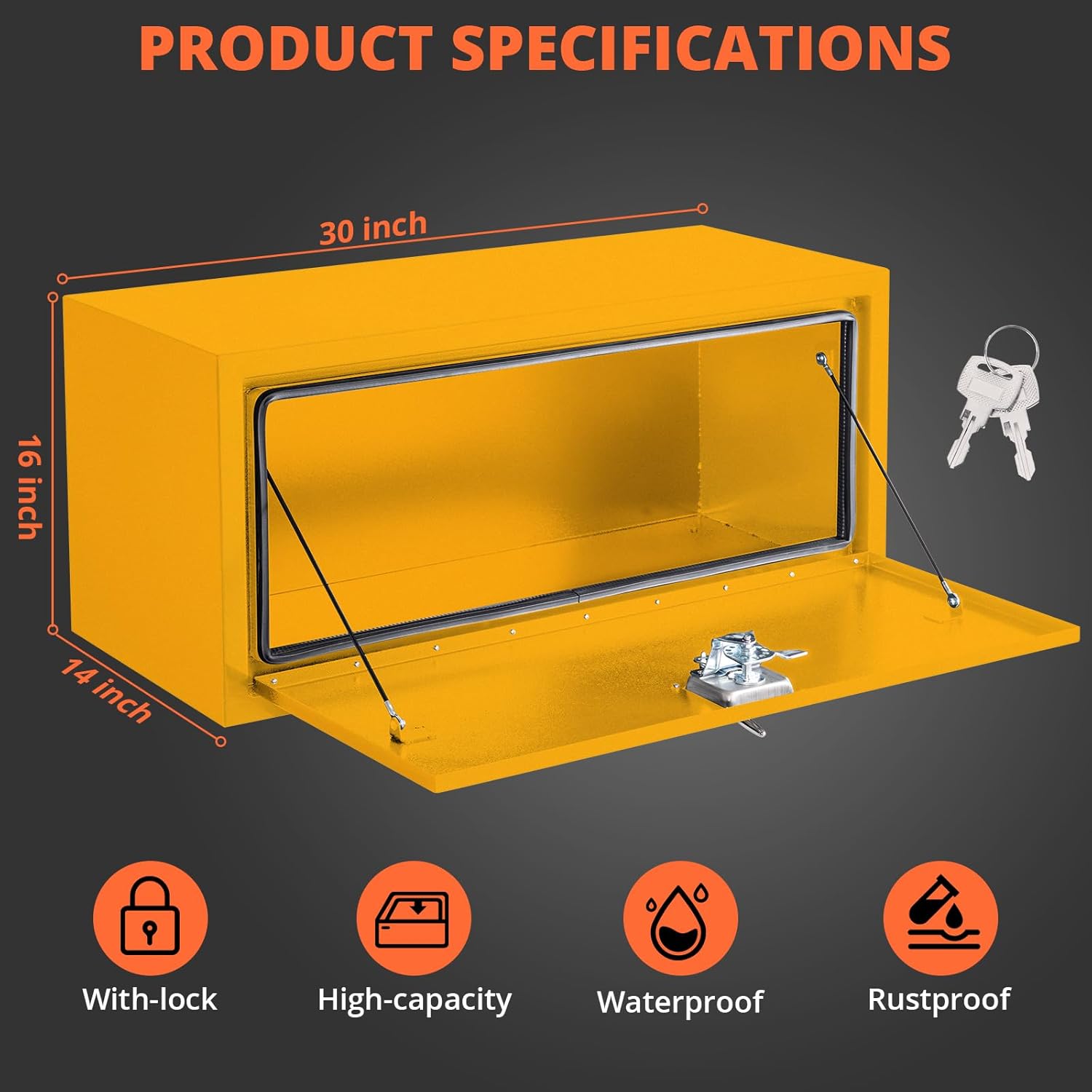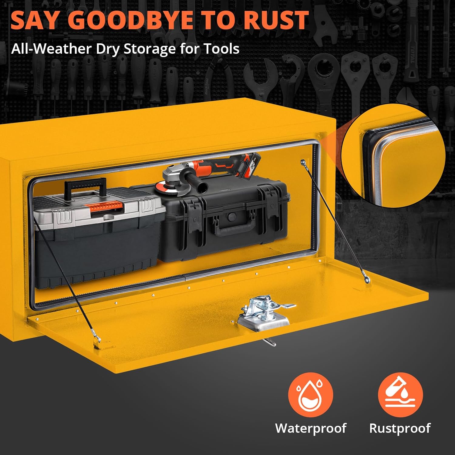 Under Truck Toolbox Steel Underbody Tool Box Lockable Waterproof Heavy Duty Tool Box Storage Organizer Chest for Tools StorageFortify your tools: Lockable truck storage keeps valuables secure and out of sight under your vehicle.The elements: Weatherproof tool box guarantees your gear stays completely dry in rain, snow, or mud. Unlock hidden space: underbody storage maximizes capacity without sacrificing ground clearance. Built to endure: Heavy duty steel toolbox withstands impacts, corrosion, and demanding job sites. Organize instantly: Streamline your gear with a dedicated truck tool organizer featuring secure compartments.