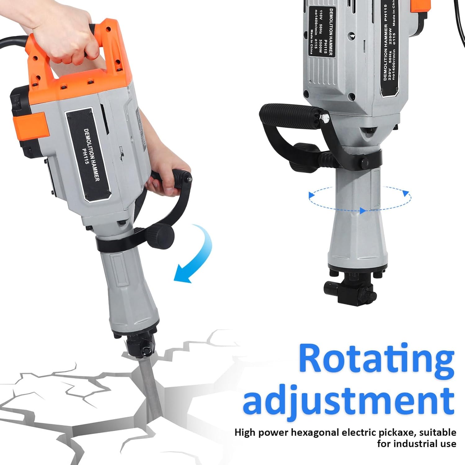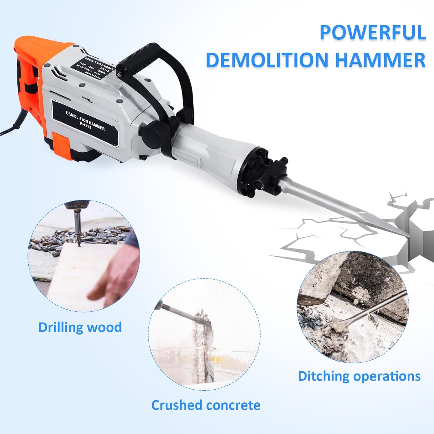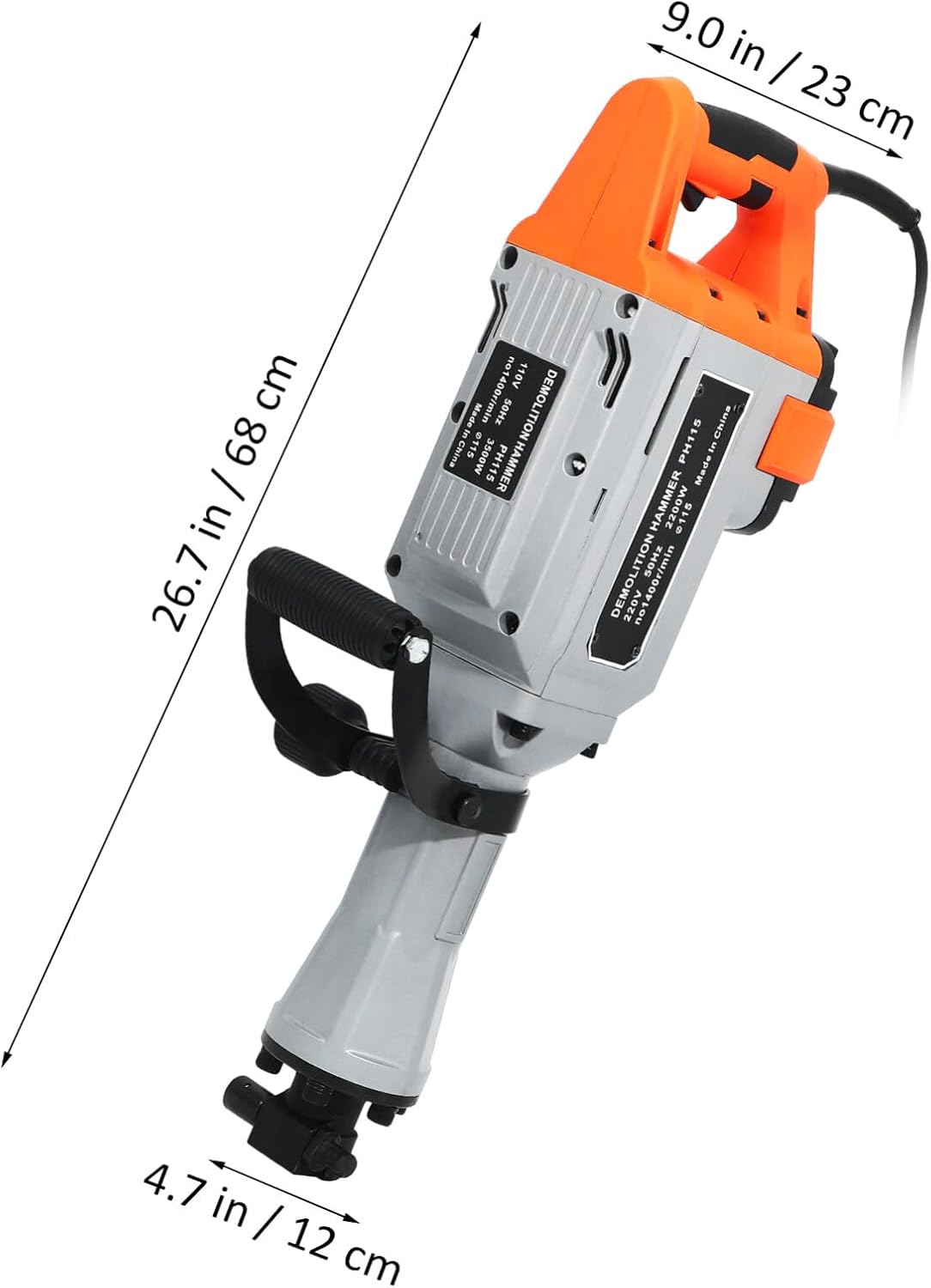DescriptionIntroducing our powerful and efficient demolition hammer, ideal for all your construction and renovation needs. With its high power and electric design, this demolition hammer is a must-have tool for chiseling, breaking, and demolishing walls, floors, and more.Features-Color:Multicolor-Material:Steel-Size:68.00X23.00X12.00cm/26.72X9.04X4.72in-Voltage: -Power: 3500w-Speed: 1400r/min- Versatile use: The electric demolition hammer is suitable for various industrial, renovation, and construction purposes.- Powerful and efficient: The demolition hammer has a high power output, making it capable of breaking through tough surfaces.- Convenient to use: The electric design of the demolition hammer makes work , while the ergonomic handle allows comfortable use.- Strong and reliable: The electric demolition hammer is made of sturdy steel material, ensuring use without damage.- Multi-functional: The demolition hammer can be used for ground excavation, wall demolition, and other tasks, making it a versatile tool.- Color: As Shown.- Size: 68.00X23.00X12.00CM.Package Including1 x demolition hammer set