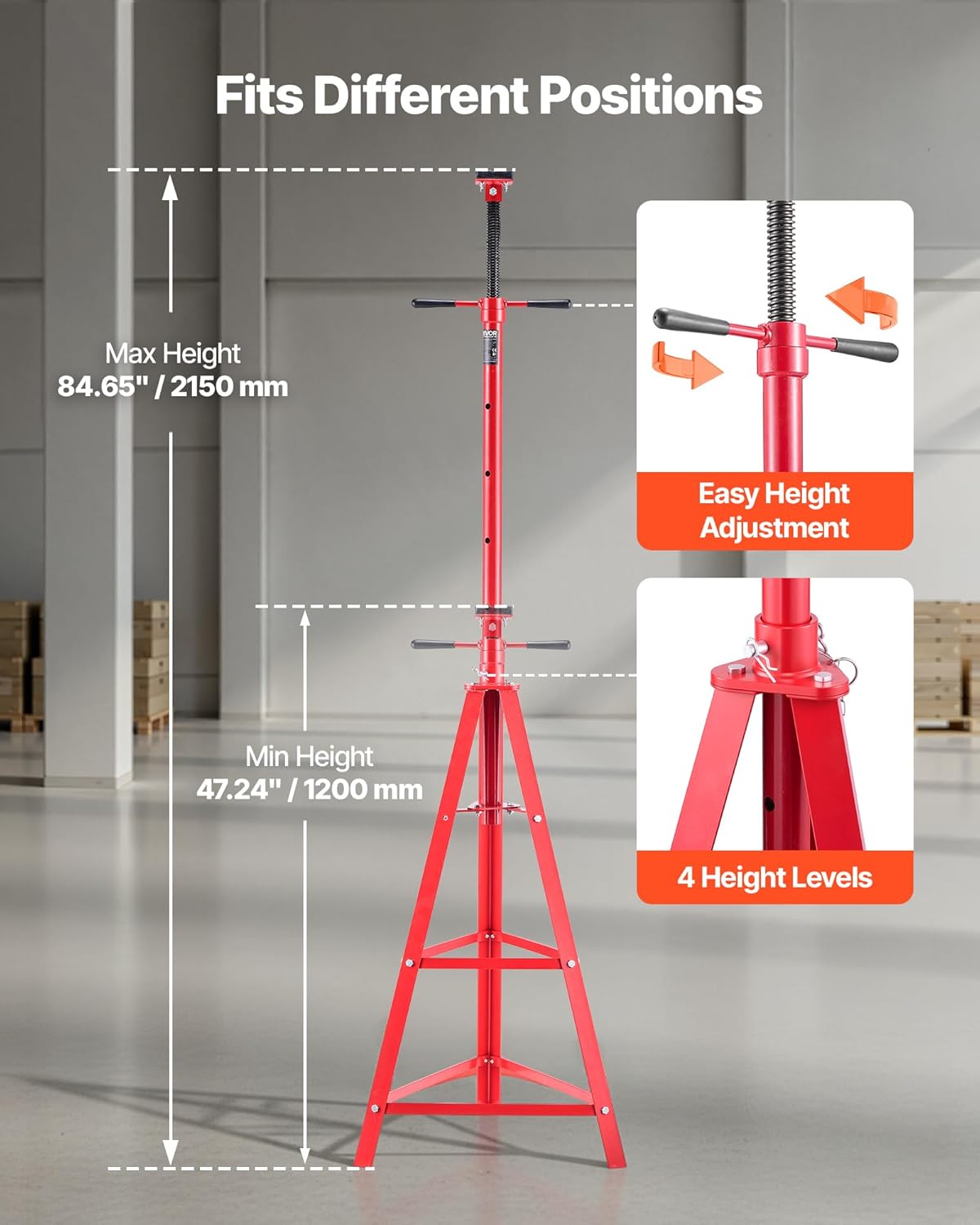 | Item Type Name | 2 Ton (4409 lbs) Capacity High Lift Jack Stand Reach Underhoist Support, Lifting from 47.24" to 84.65", 4-Level Adjustable Height, Heavy Duty Carbon Steel for Car Lift |