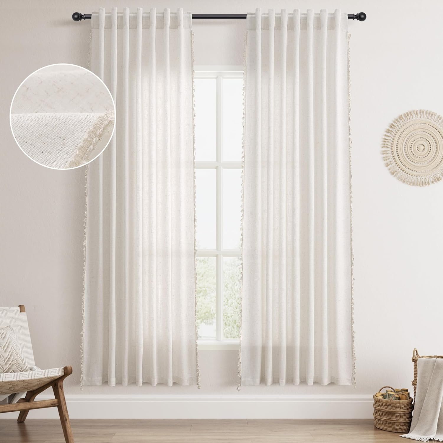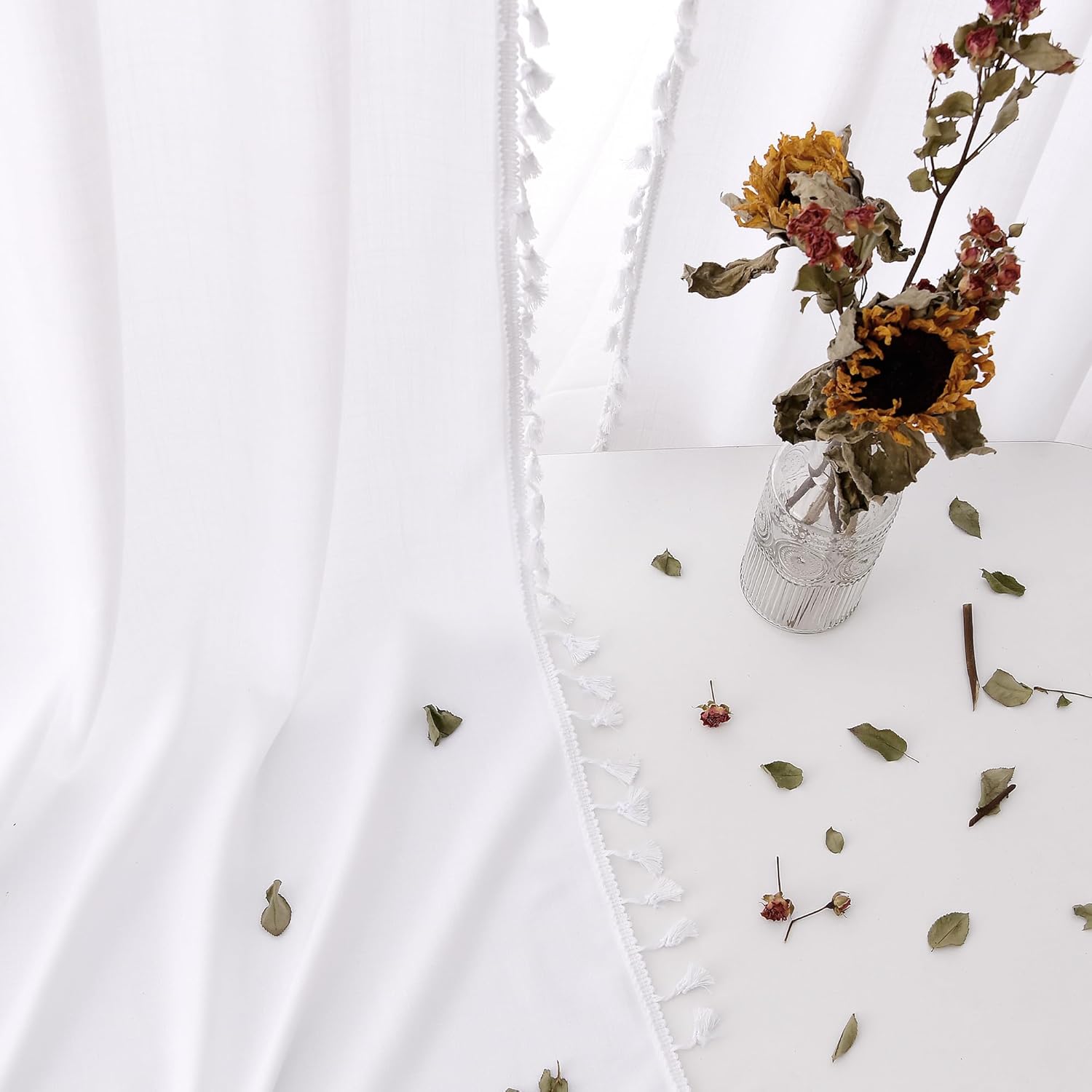 | Subject Character | white tassle curtains |