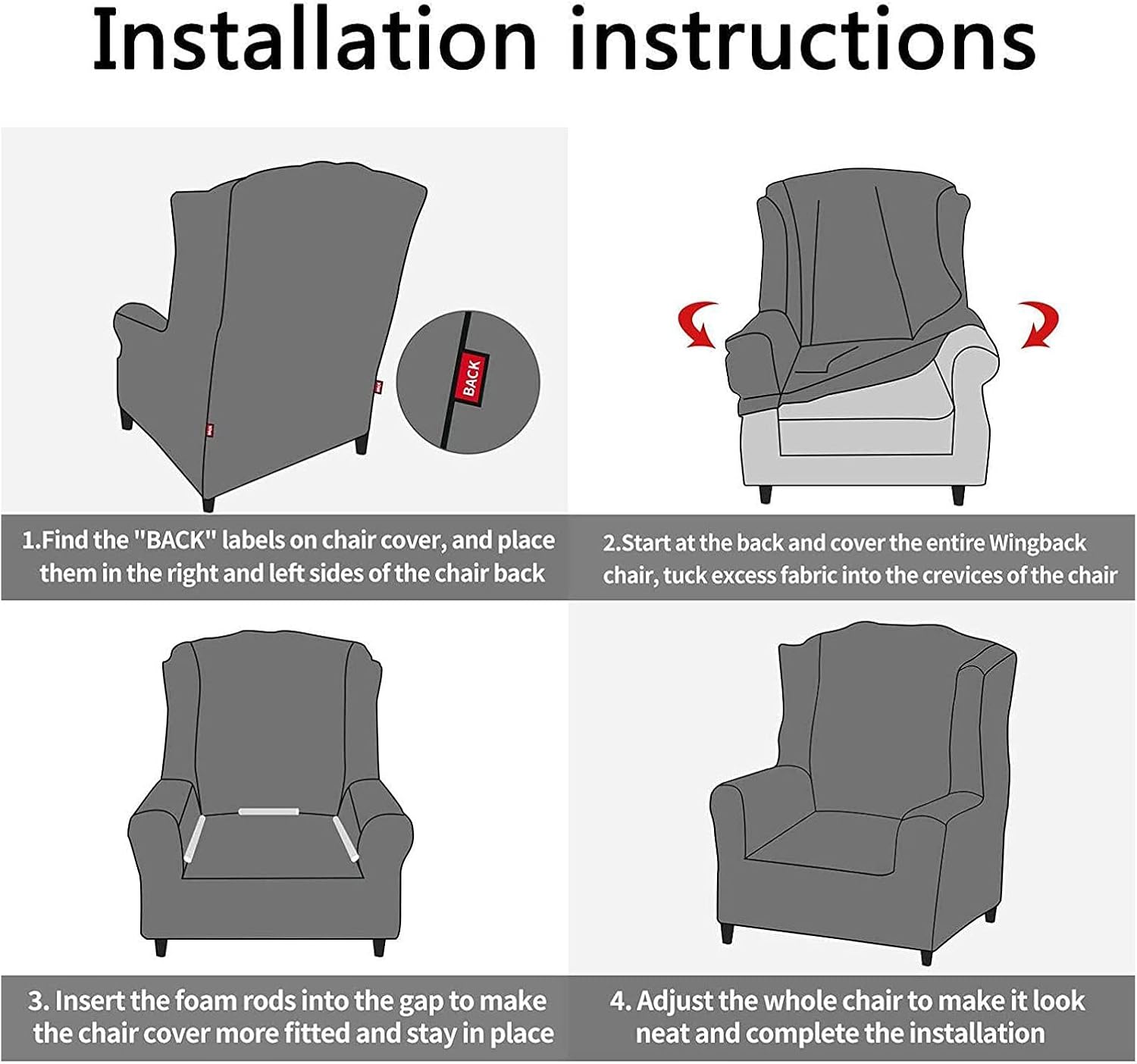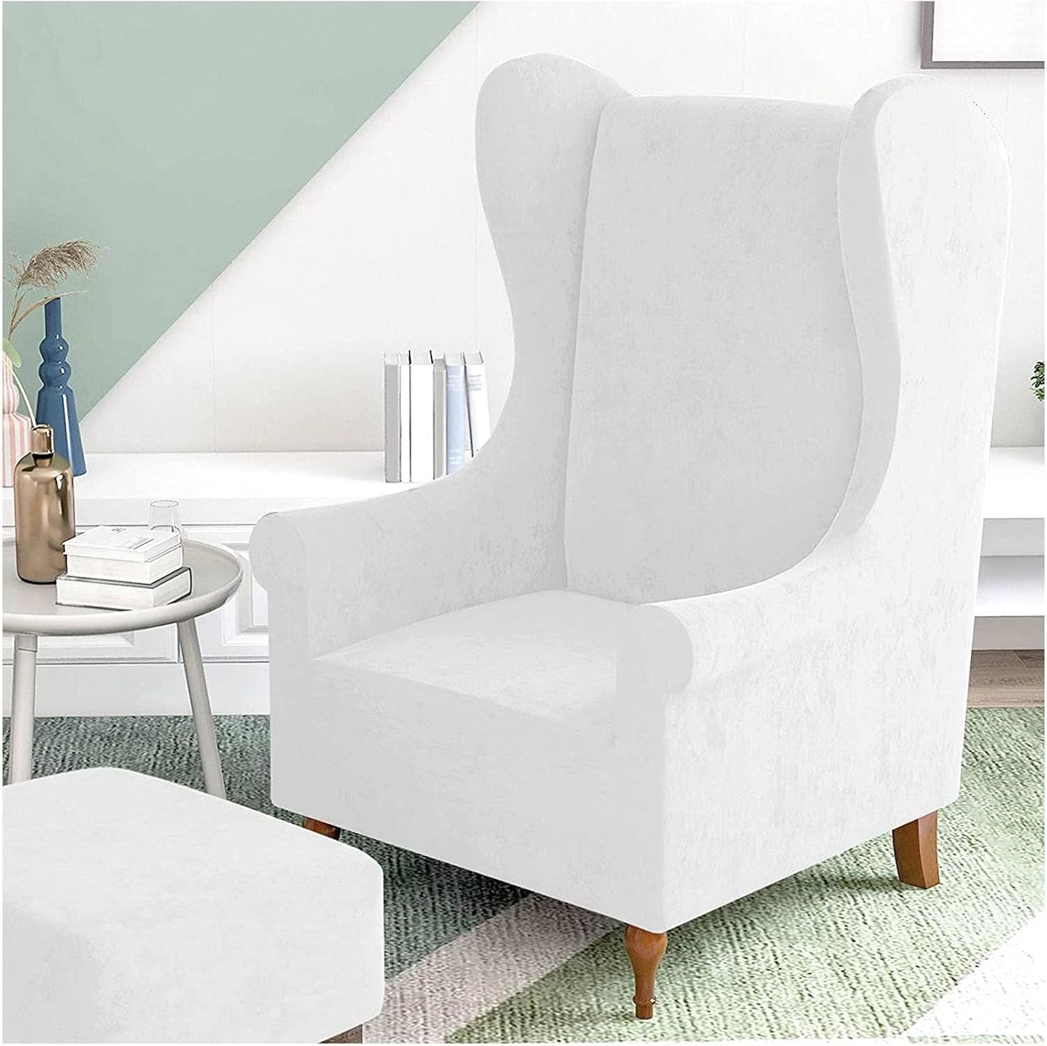 Wing chair slipcoverComfortable, beautiful, good-fitSTRETCH FIT: Crafted from elastic fabric,Polyester and Spandex, high stretchy, soft and durable. It fits most wingback chairsThe fashionable pattern and simple design will never be out of date. You can choose your favorite color according to the overall style of your room.wing chair slipcovers great for pets and kids.wingback chair slipcovers will prevent your chairs from spills, stains, wear and tear, dirt, and pet’s scratch and bite.✔ Made of elastic fabric, high stretchy, soft and durable. It can fit most wing chair.✔ Perfect protection against dust, spots, wear and tear, spills, pet scratches, pet hair.✔easy to put on and off, You can put the extra cloth under the seat cushion.✔ EASY TO INSTALL: The installation process is simple and easy to operate. Just find the washing label on the back of the cover and you can easily put it on.✔ Suitable for home, hotel, office, party, celebration or other events.Wing chair slipcovers1 Due to the different monitor and light effect, the actual color of the item might be slightly different.2 Please allow 1-3cm measuring deviation due to manual measurement.3 Please kindly measure your chair seats before placing order.