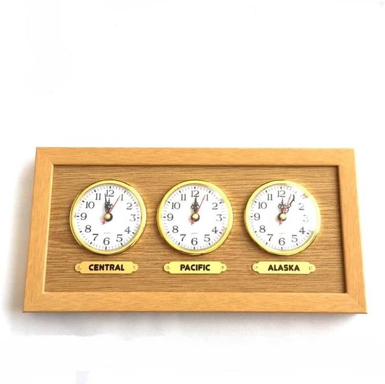 clock diameter : 3,14 inches ( 8 cm) Height: 6,69 inches ( 17 cm ) Width: 13,38 inches ( 34 cm ) Depth: 1.18 inches ( 3 cm ) Powered by 3 batteries (batteries not included) Required 1 AA battery x 3 (not included) Wooden look personalized clock with 3 labels. Custom Time Zone. 3 clock. Wall multi zone clock. city sticker wall clock. Custom cities time
