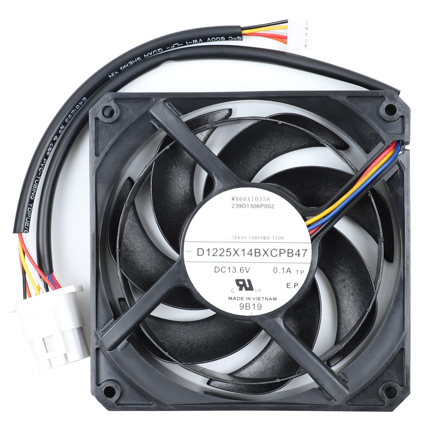 Upgraded WR60X10358 WR60X10339 Refrigerator Condenser Fan Motor Compatible with GE, Replacement for GE Evaporator Fan Motor CFE28TSHBSS CFE28TSHCSS CFE29TSDASS CFE29TSDBSS CFE29TSDCSS Brand YAEHUYING DC 13.6V 0.1A Size is 4.72x4.72x1.0inch Wire length 8.6inch 9pin connector.