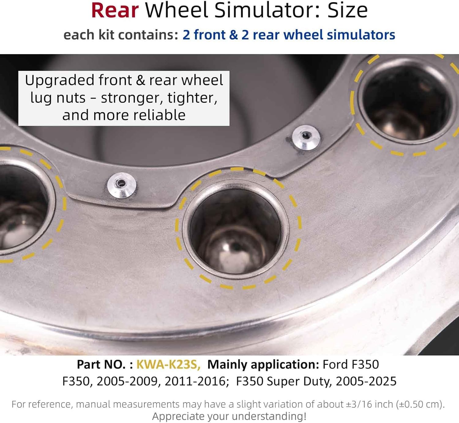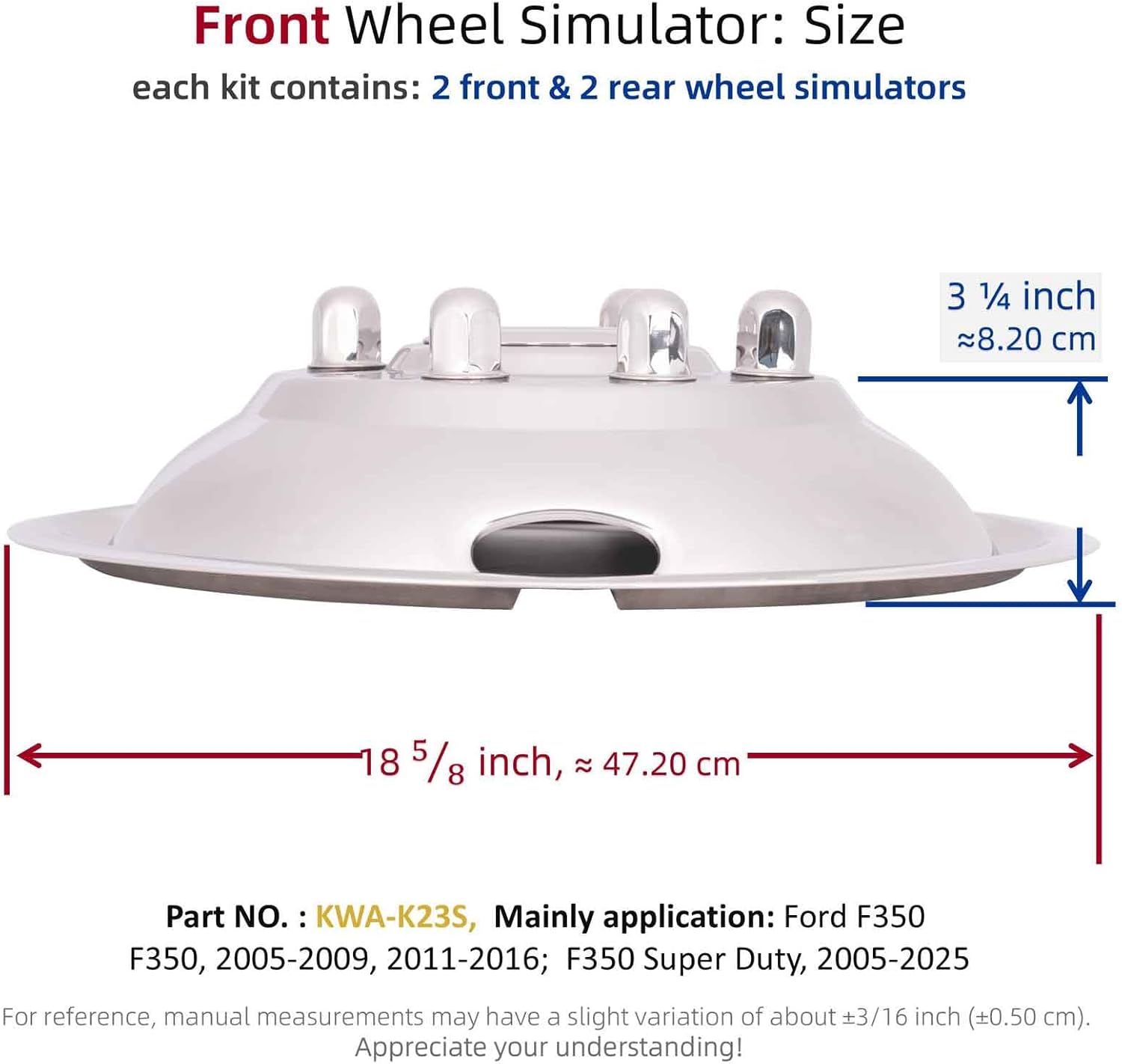 17.0 inch Wheel Simulators - 8 Lug 4 Hand Holes Wheel Simulators - Perimum L304 Stainless Steel Dually Simulators Kit - Wheel Cover mainly for 2005-2009/2011-2016 Ford F350, 2005-2025 F350 Heavy Duty
