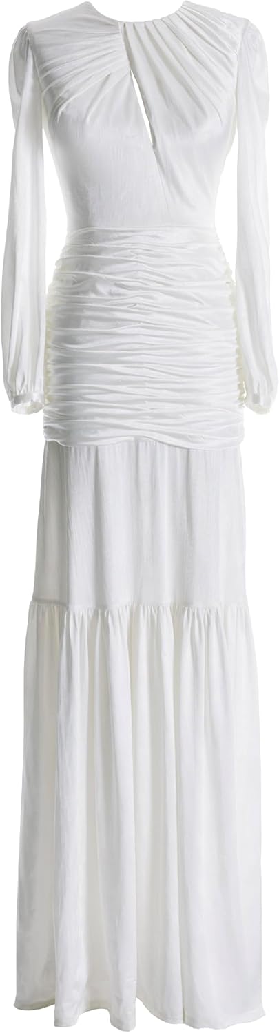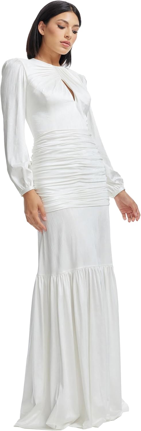| Embellishment Feature | blouson sleeves, ruched tiered gown design, twist keyhole front |