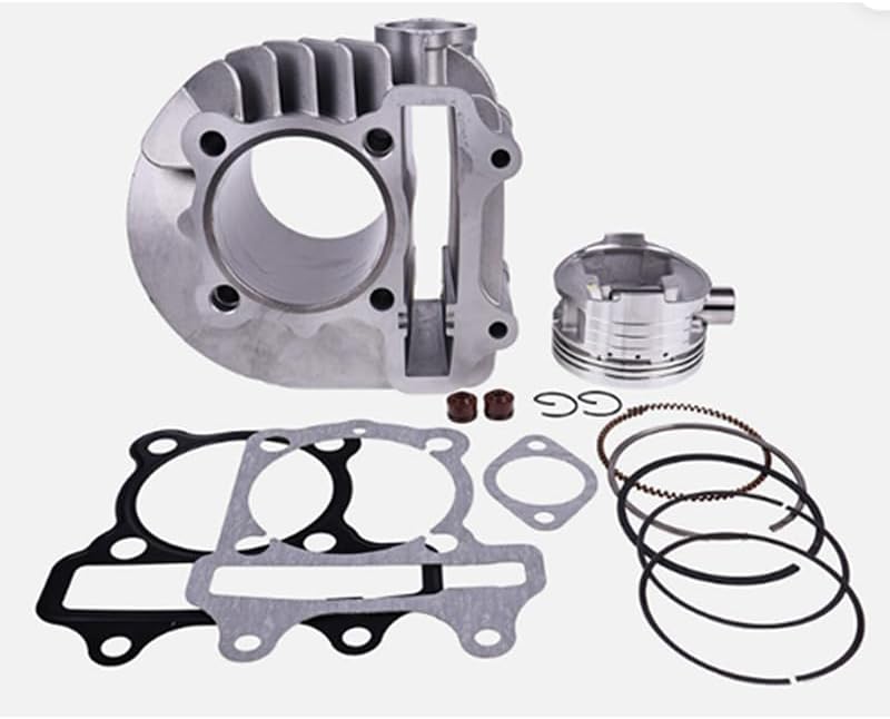 Specifics:Material: AluminumCylinder Bore Size: approx 61mmNumber of ring slots:3Fitment:Fits for Big Bore Haomai GY6 150CC 200CC 61mmPackage includes:1 x Air cylinder,2 x gasket,1 x piston,1 x piston pin,2 x circlips,1 x set of rings,As shown in the figure.Features:Manufactured using the latest computerized technologies derived from GP and F1.Forged pistons are more temperature resistant and longer lasting than cast pistons.These pistons additionally have a piston skirt coating.The piston sets are supplied complete with rings.Airtight function,prevent gas leakage from the top of the piston.This piston ring also achieve the heat dissipation effect.Prevent excessive oil from entering the combustion chamber and to fully lubricate the cylinder wall.Maintain the direction of movement of the piston,so please select the best piston ring for the engine.This kit includes a piston, rings, wrist pin, and circlips.Professional install will be highly recommanded. No installation instruction included.