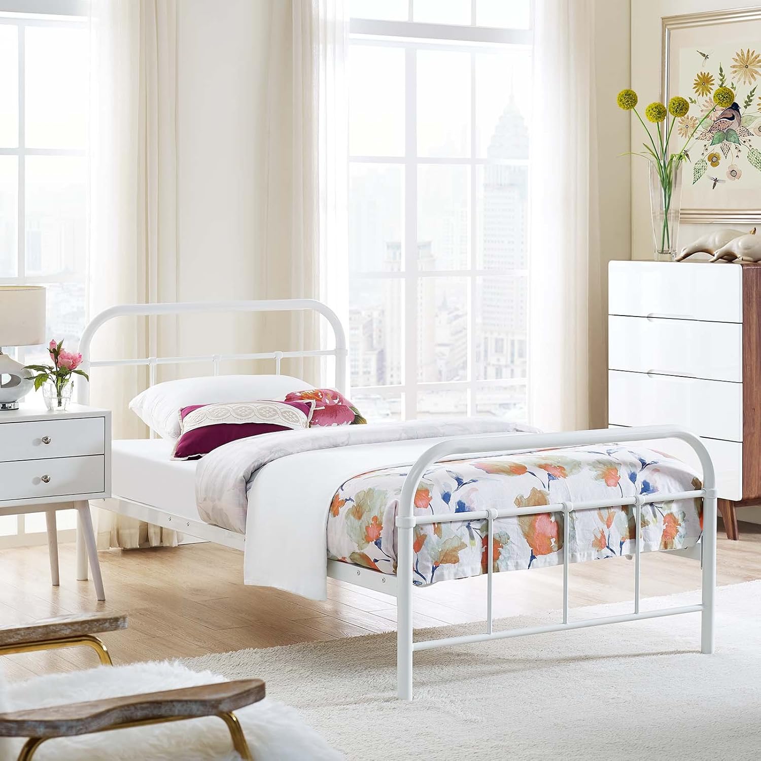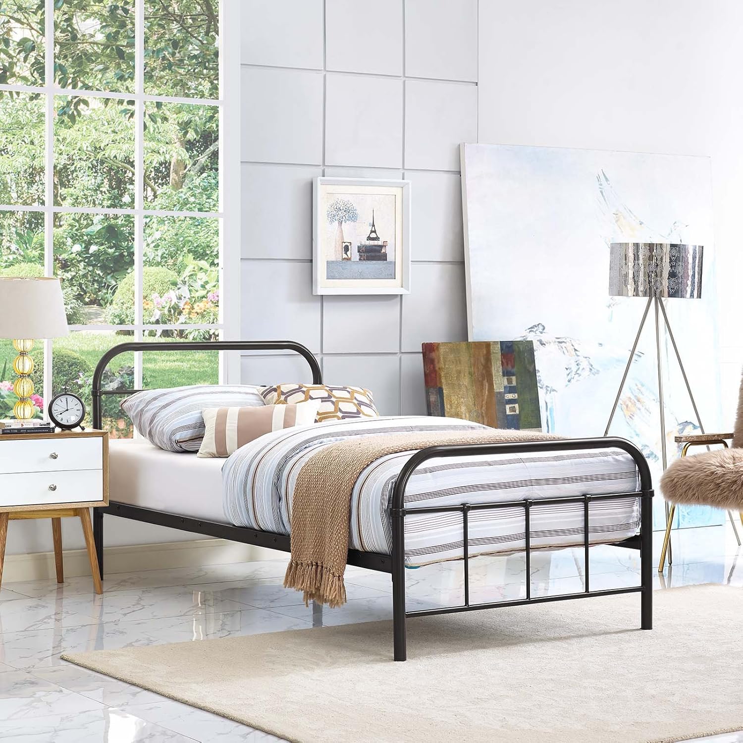 Reap styling success through a grafted blend of vintage farmhouse and contemporary decor with the Maisie Platform Bed. Able to comfortably hold up to 1323 lbs., Maisie was designed with vintage look steel piping to promote the serene tranquility of rustic cottages and country home decor. Complete with a sturdy and reliable construction, and a reinforced center beam, Maisie eliminates the need for a box spring and supports mattress types such as memory foam, spring, latex, and hybrid. Mattress not included.